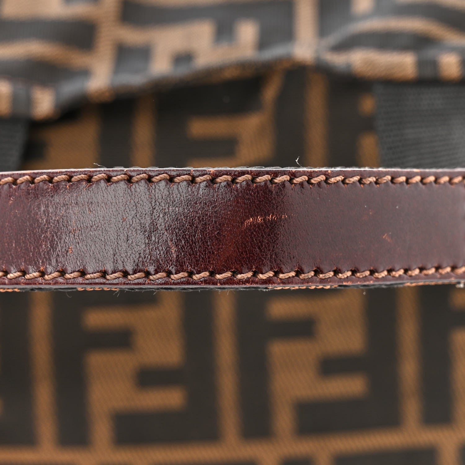 This is an authentic FENDI Fabric FF 1925 Mini Cosmetic Bag in Tobacco. This chic bag is finely crafted of Fendi FF fabric in brown with Fendi 1925 motif brown nylon handles. This handbag features a top zipper in an aged silver tone. The top zipper opens to a brown fabric interior.Follow this item for alerts. Fendi is a registered trademark of Fendi. FASHIONPHILE is not affiliated with Fendi.