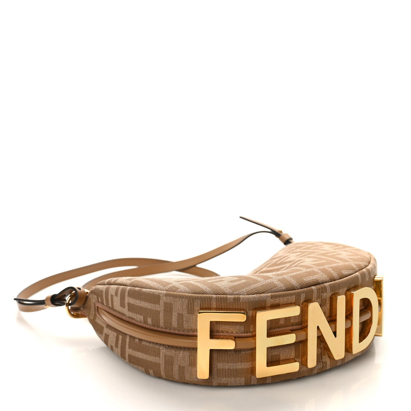 Fendi/ Bags/ Clutch & Evening /Fendi Fabric Jacquard Vitello Grace FF 1974 Mini Fendigraphy Hobo Bag Beige