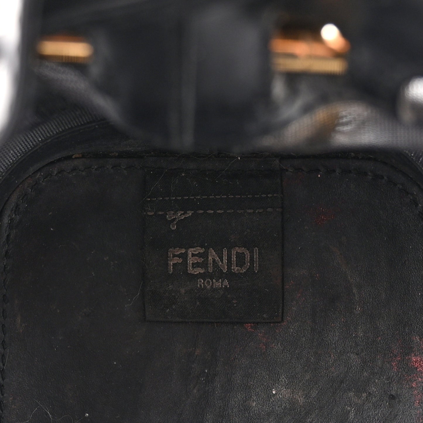 Fendi/ Bags/ Shoulder Bags /Fendi Mesh Vitello King F is Fendi Logo Embroidered Mini Mon Tresor Bucket Bag Black