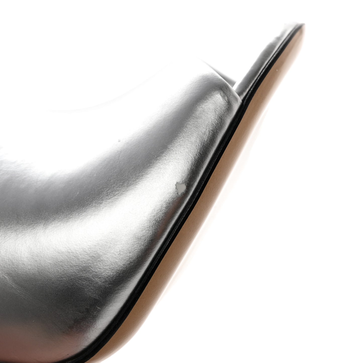Metallic Calfskin Fendi First 95mm Slide Sandals 38 Argento