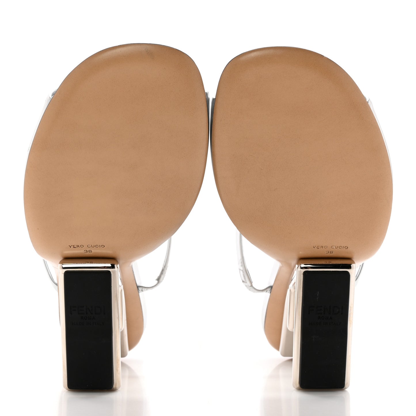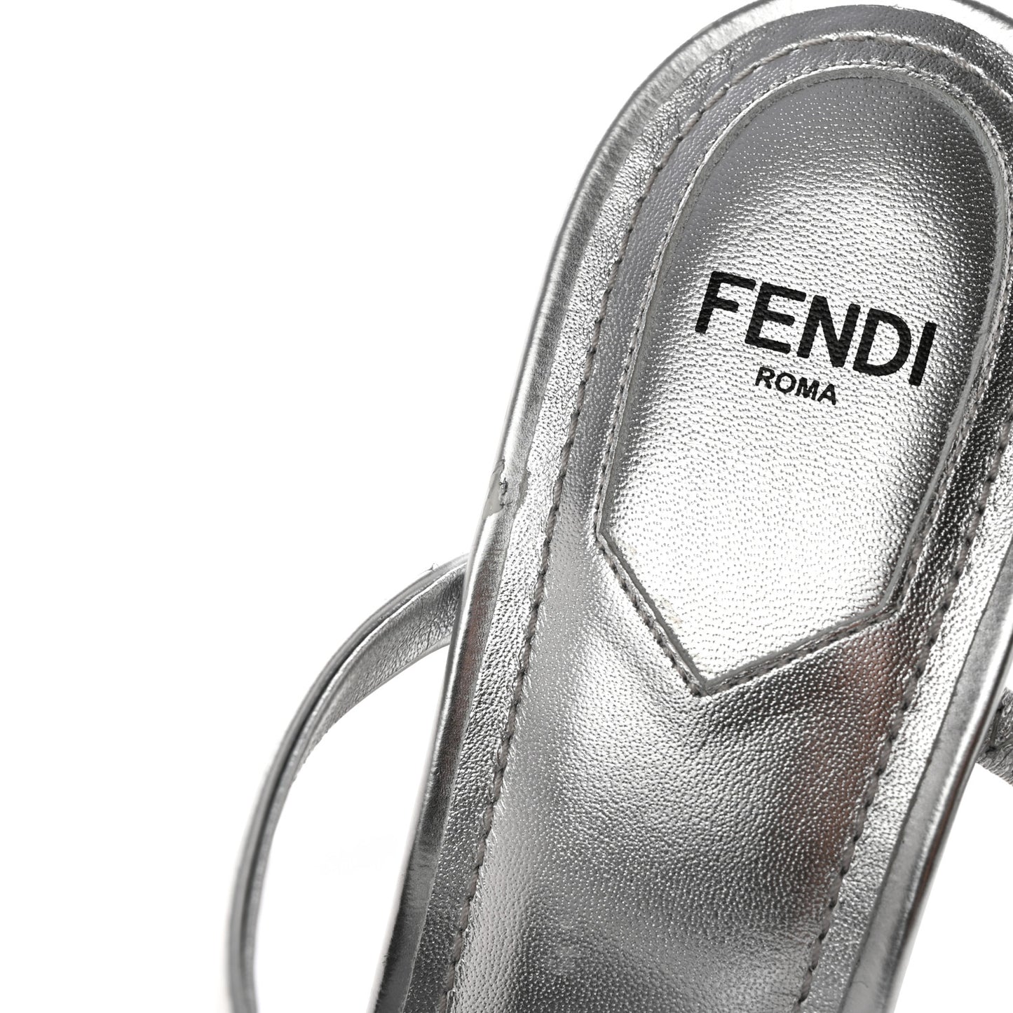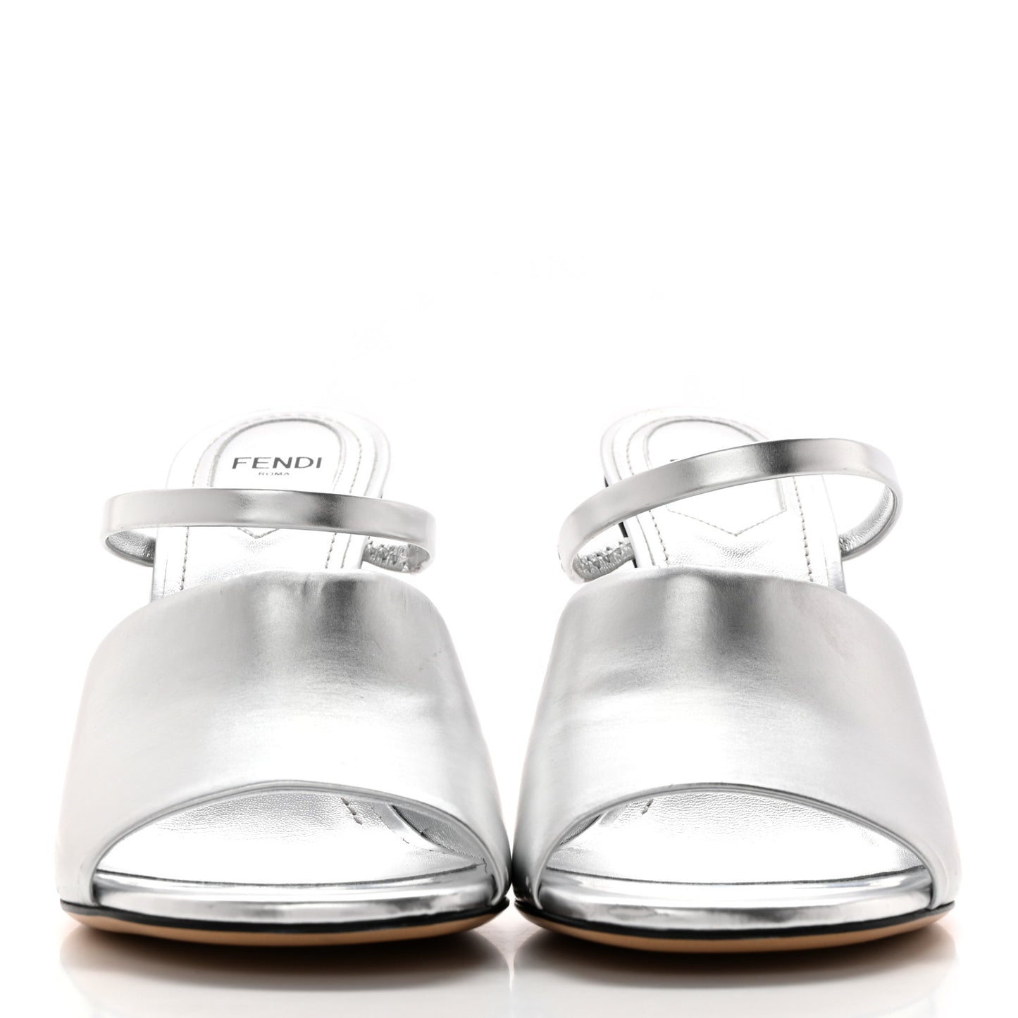 Fendi/ Accessories/ Shoes /Fendi Metallic Calfskin Fendi First 95mm Slide Sandals 38 Argento