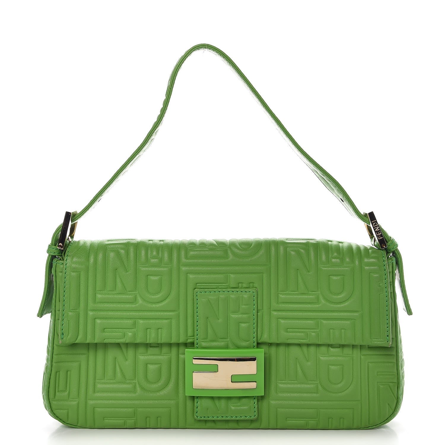 Fendi/ Bags/ Shoulder Bags /Fendi Nappa Logo Embossed Baguette Green