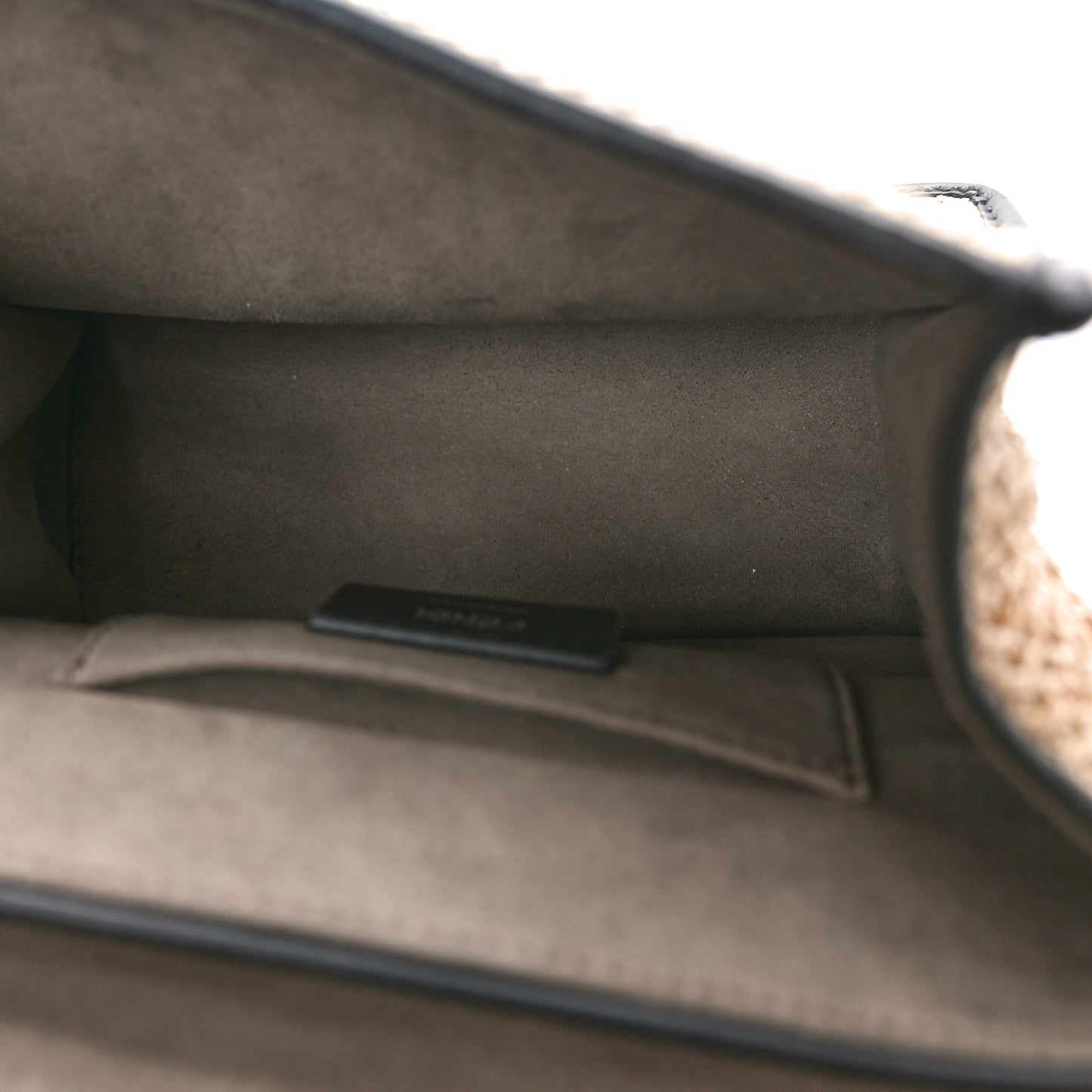 Raffia Vitello Century F is Fendi FF Embroidered Fringe Small Kan I Shoulder Bag Natural Black
