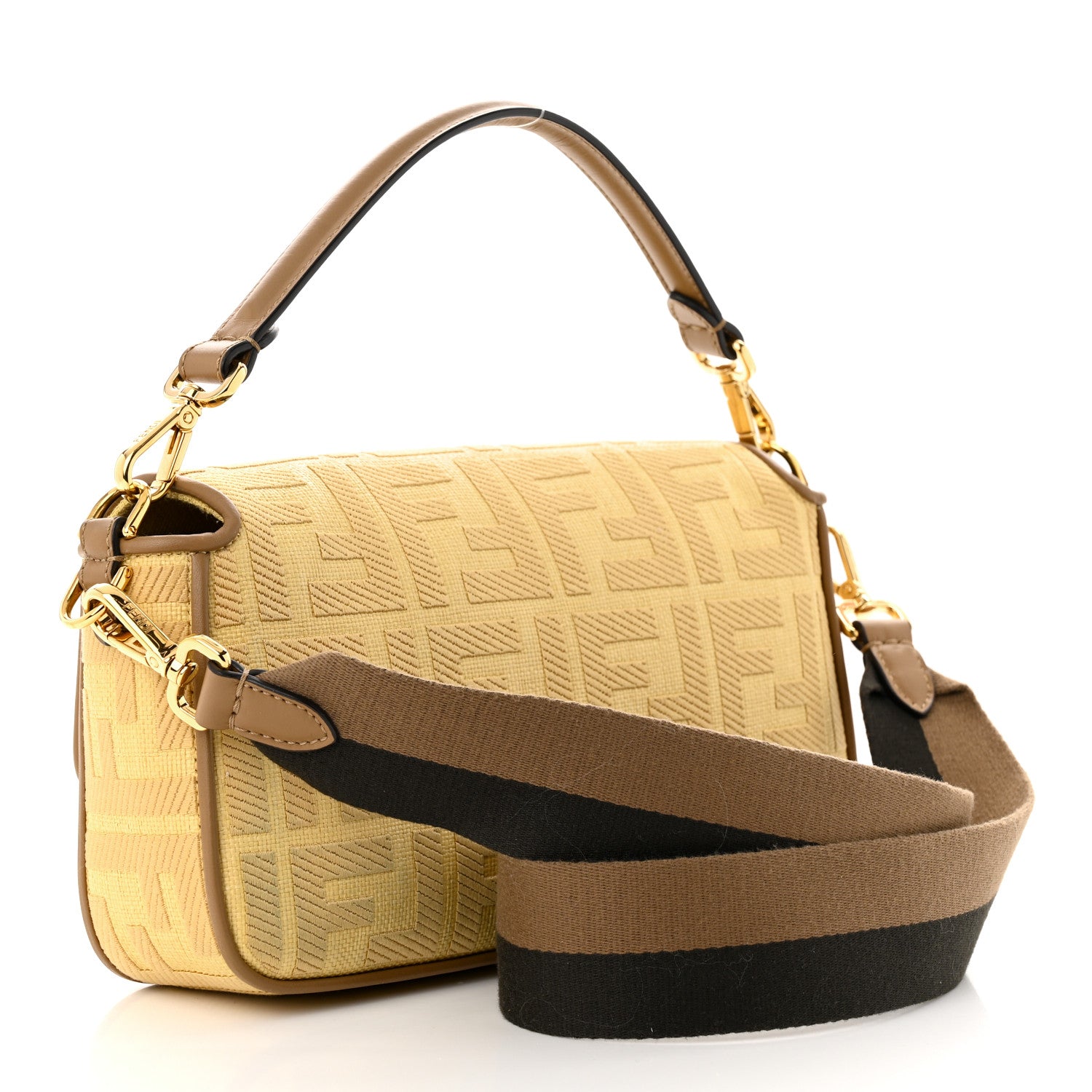 Fendi/ Bags/ Shoulder Bags /Fendi Raffia Vitello King Lucido FF Embroidered Baguette Grano Sand