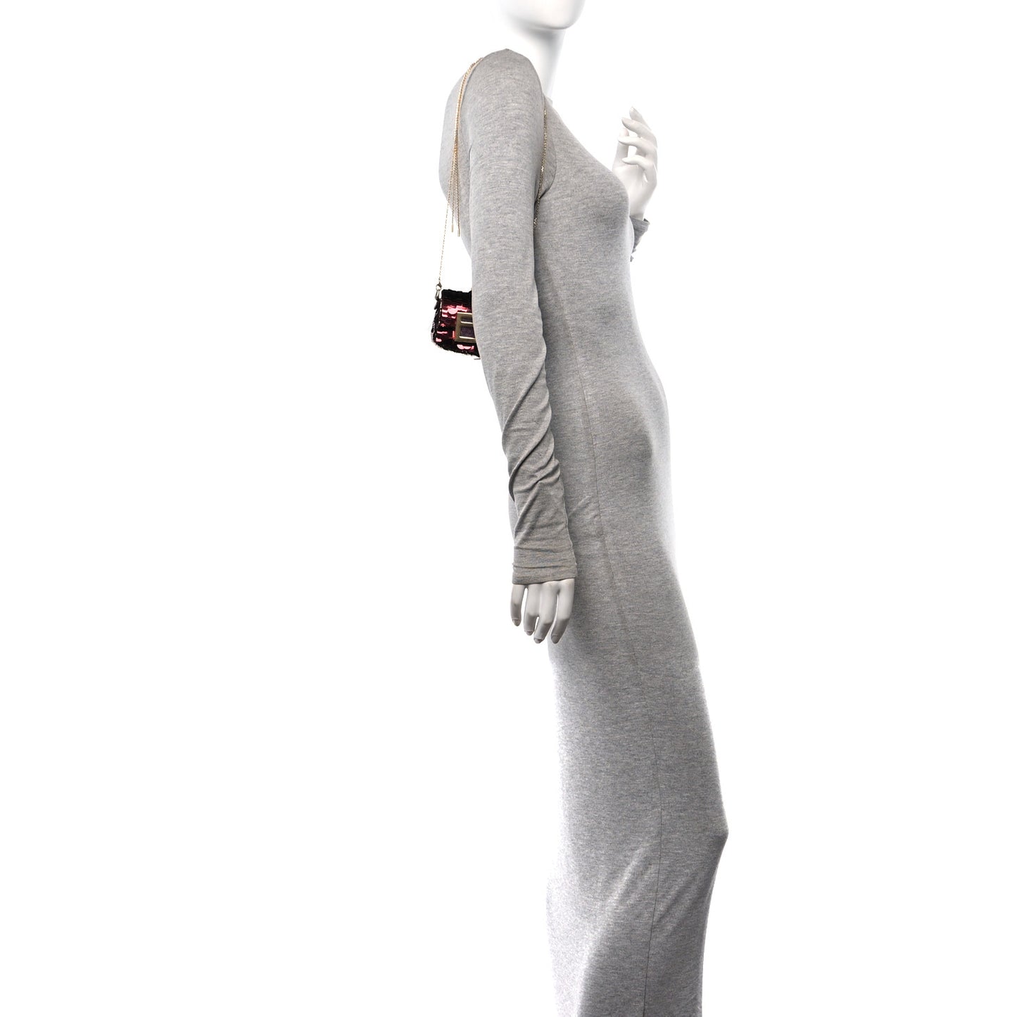 Fendi/ Bags/ Shoulder Bags /Fendi Sequin Paillettes Shiny Nappa Sex and the City Nano Maxi Buckle Baguette Charm Granata