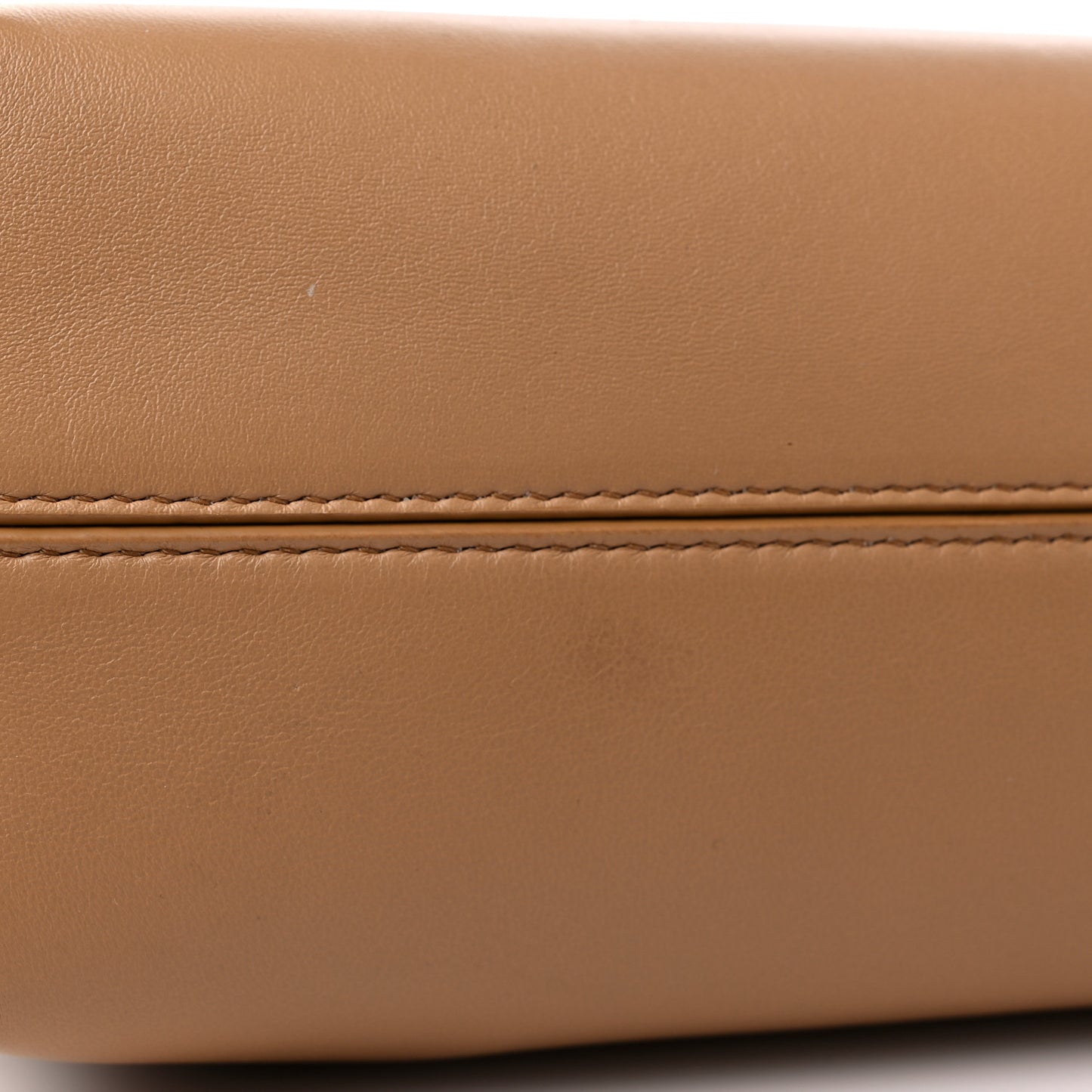This is an authentic FENDI Shiny Nappa Small Fendi First in Sand. This chic bag is crafted of lambskin leather in light brown. The bag features a matching optional shoulder strap with polished gold-tone hardware. The top opens with a prominent hinged, gold-tone Fendi logo detail to a spacious interior. The bag is lined with the signature Fendi FF fabric jacquard motif. The Fendi First can be carried like a clutch or worn as a shoulder bag.Follow this item for alerts. Fendi is a registered trademark of Fendi. FASHIONPHILE is not affiliated with Fendi.