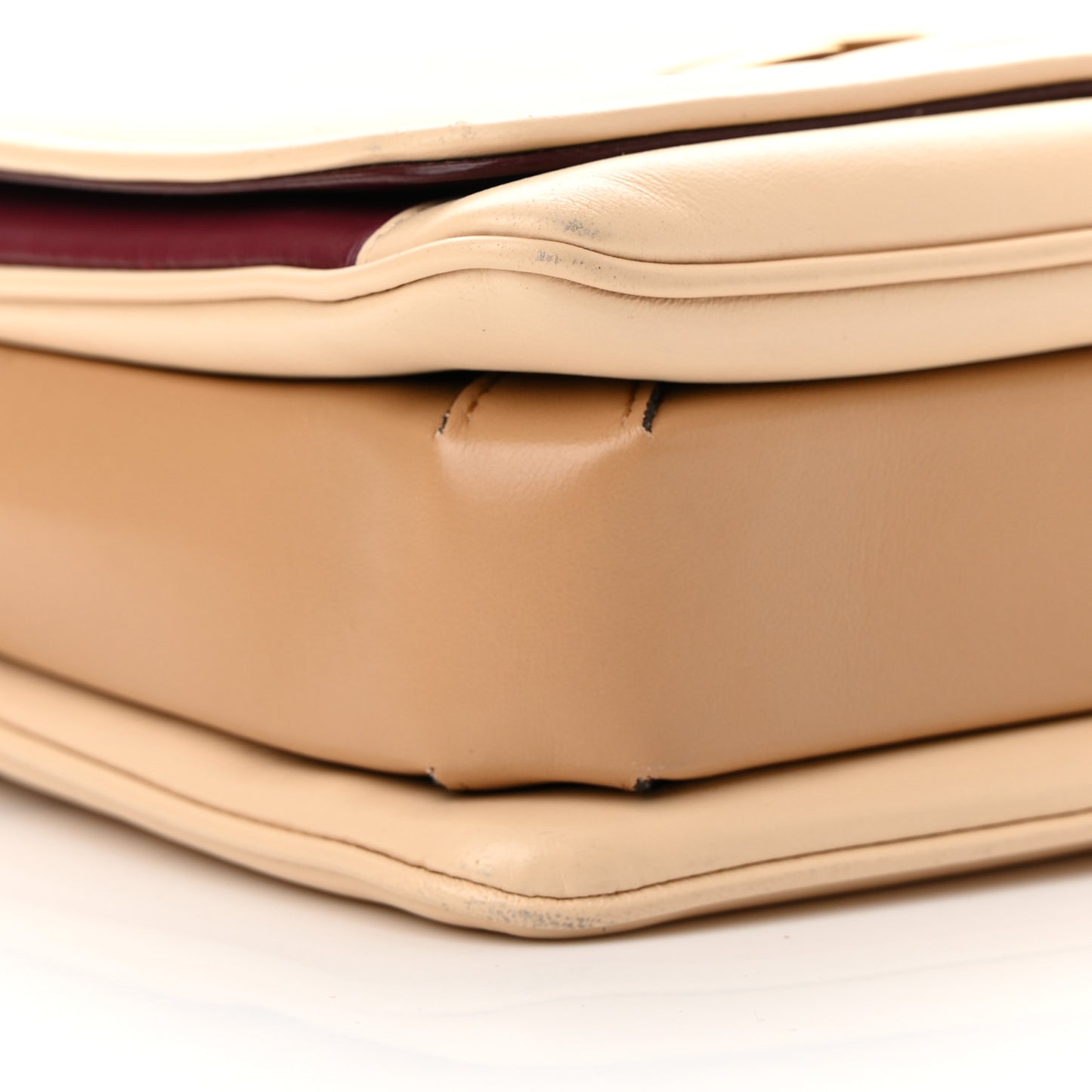 This is an authentic FENDI Shiny Nappa Small ID Shoulder Bag in Papiro, Rosso Scuro, and Miele Scuro. This bag is crafted of supple lambskin leather. This shoulder bag features an adjustable leather shoulder strap with gold hardware. The front flap has a decorative FF gold closure. The bag opens to a partitioned brown fabric interior with a patch pocket.Follow this item for alerts. Fendi is a registered trademark of Fendi. FASHIONPHILE is not affiliated with Fendi.