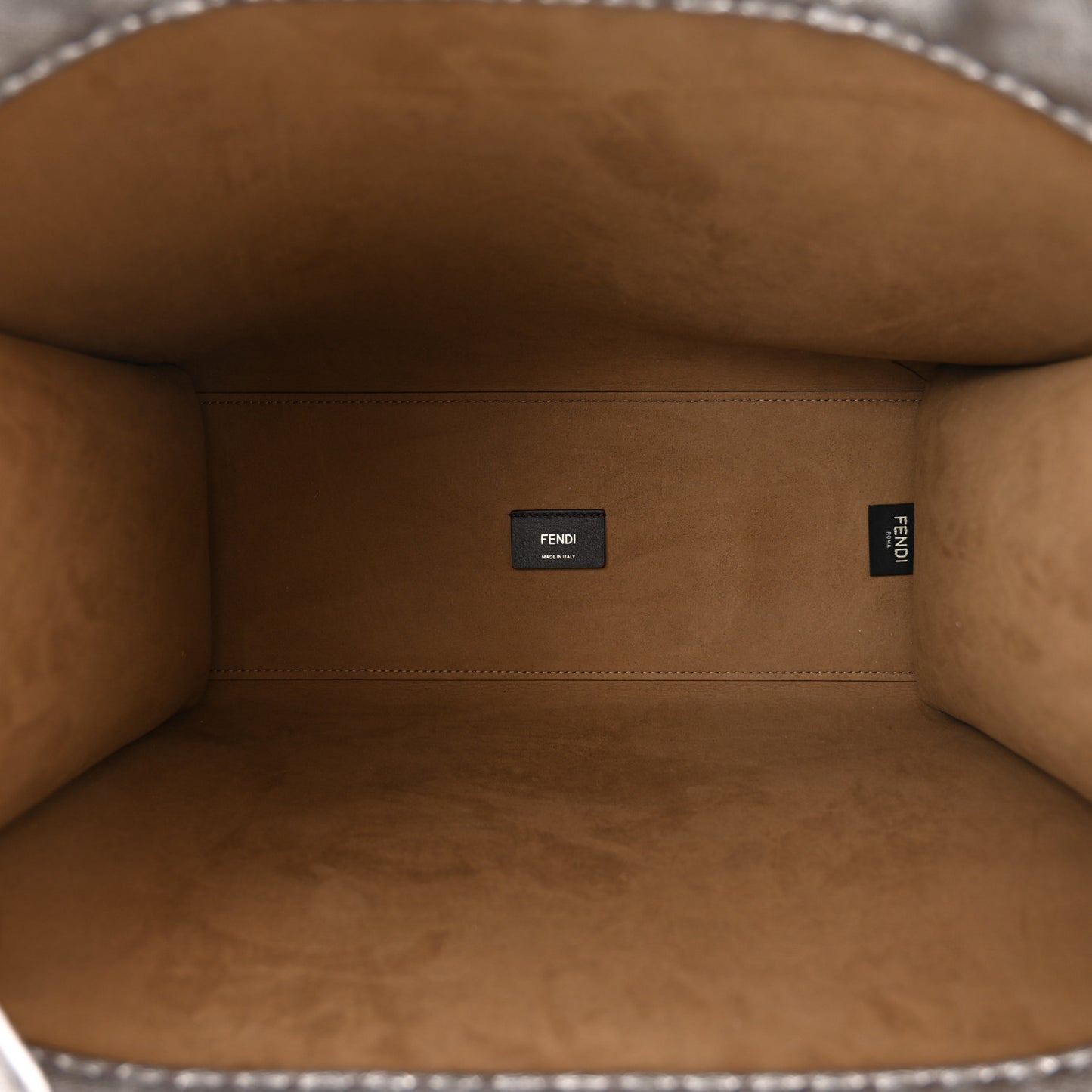 This is an authentic FENDI Laminated Calfskin Plexiglass Medium Fendi Sunshine Shopper Tote in Argento. This shopping tote is crafted in silver metallic leather with stitched detailing and features resin tortoiseshell top handles, gold hardware, and a bold, embossed Fendi logo. The top opens to a brown suede interior.Follow this item for alerts. Fendi is a registered trademark of Fendi. FASHIONPHILE is not affiliated with Fendi.