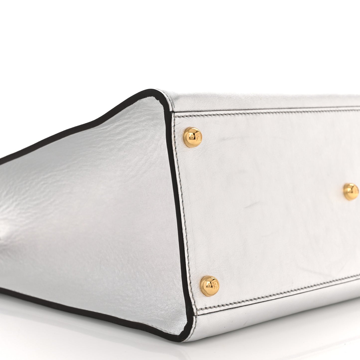 Vitello Catalan Mirror Plexiglass Logo Embossed Medium Fendi Sunshine Shopper Tote Argento