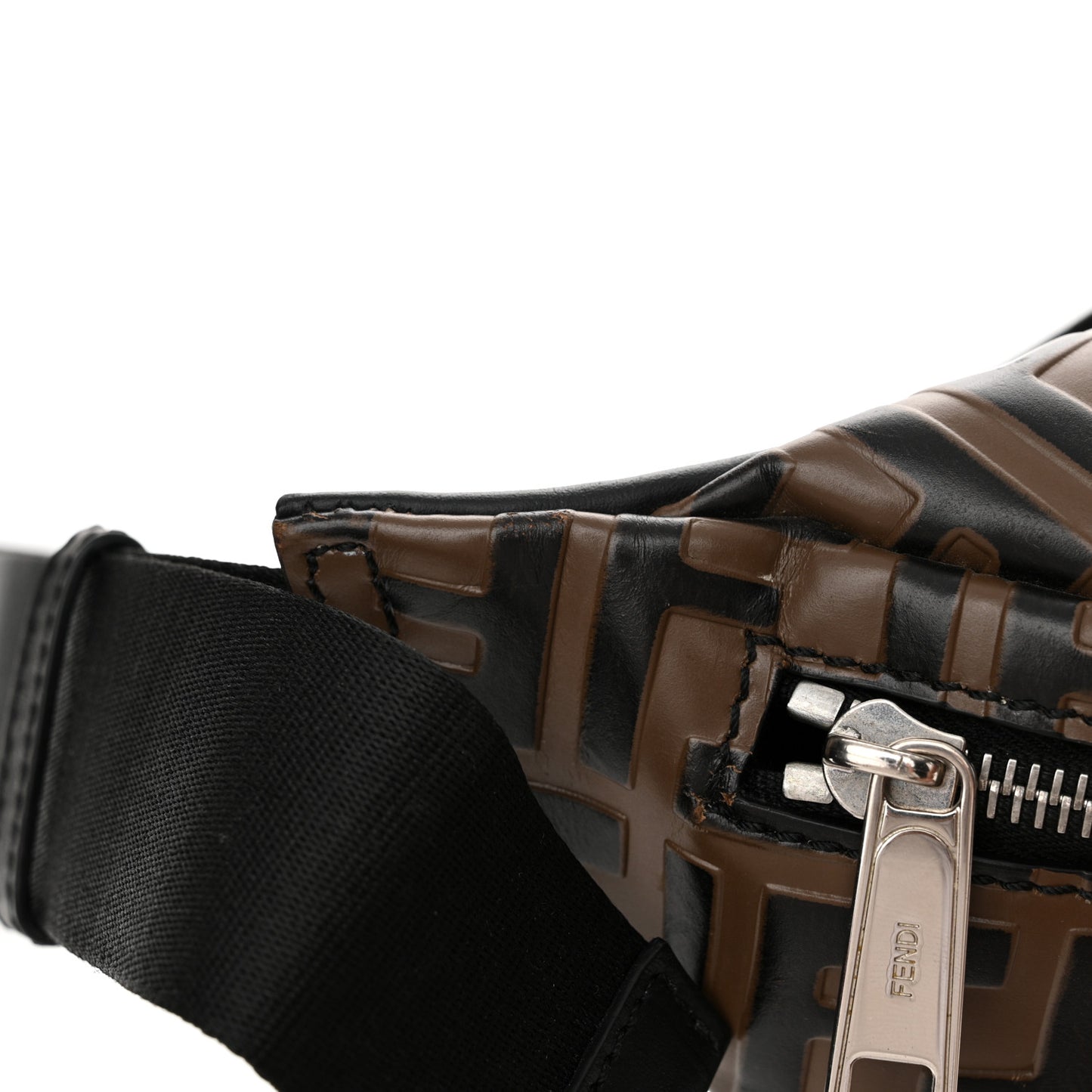 Fendi/ Bags/ Men's Bags /Fendi Vitello Century Bi-Color FF 1974 Embossed Belt Bag Maya Black
