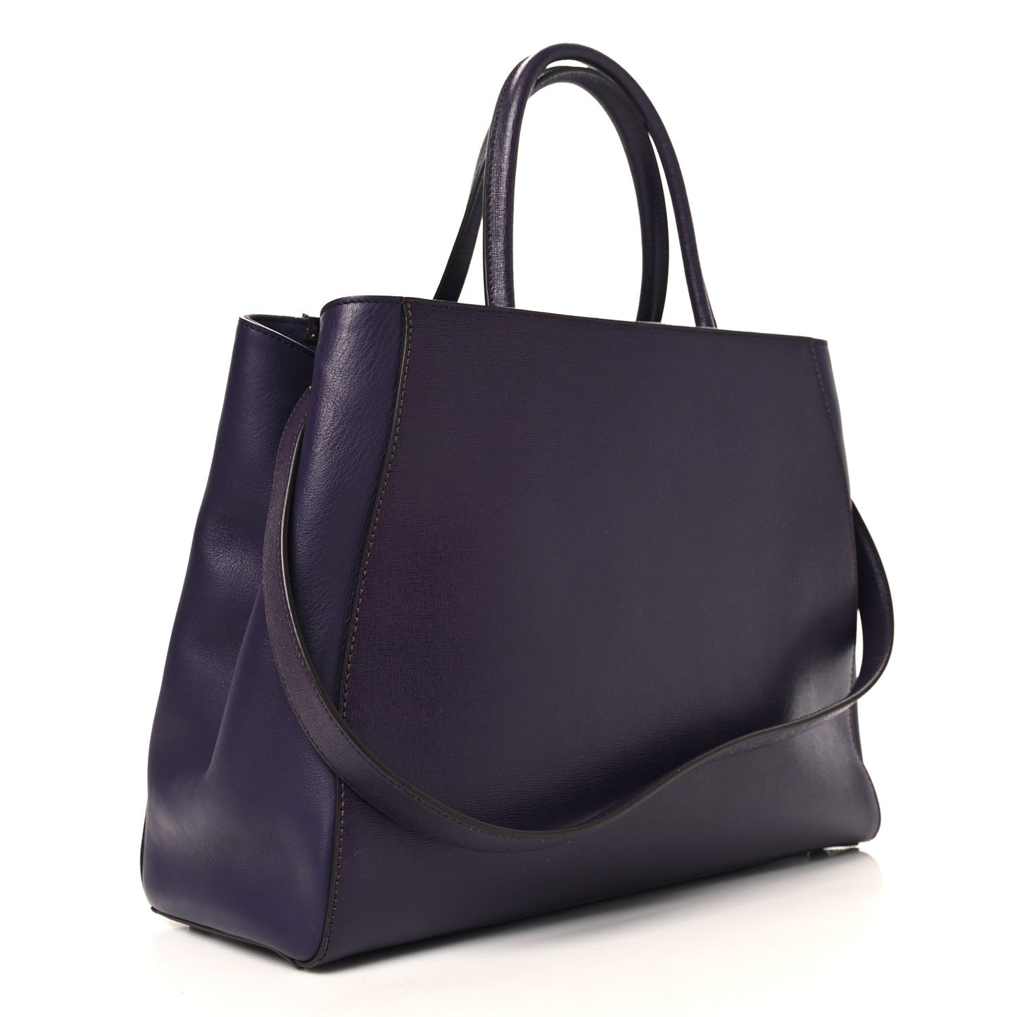 This is an authentic FENDI Vitello Elite Regular 2Jours Tote in Amethyst. This stylish tote is crafted of fine-textured calfskin leather in dark purple. The shoulder bag features rolled leather top handles, an optional shoulder strap, and a purple and polished silver bar along the top. The bag opens to a partitioned striped purple fabric interior with patch pockets and a central zipper compartment.Follow this item for alerts. Fendi is a registered trademark of Fendi. FASHIONPHILE is not affiliated with Fendi.