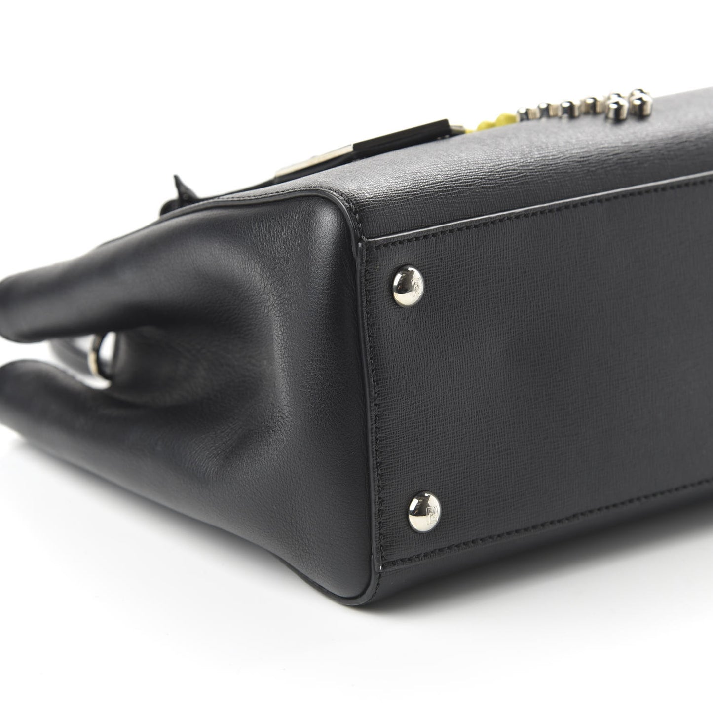 Fendi/ Bags/ Shoulder Bags /Fendi Vitello Elite Studded Light Bulb Petite 2Jours Tote Black Yellow