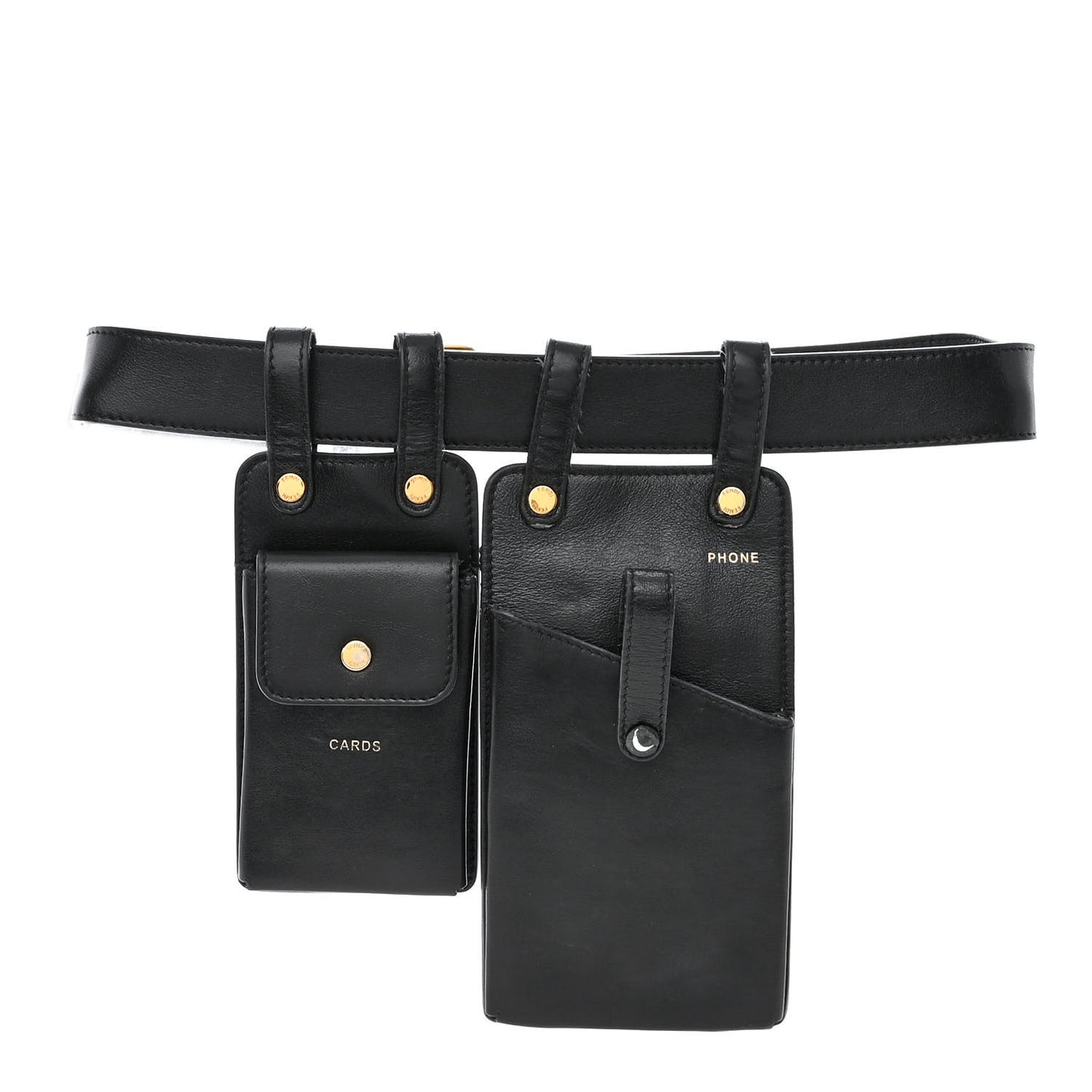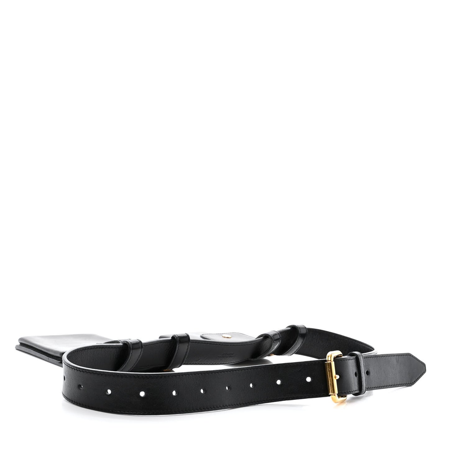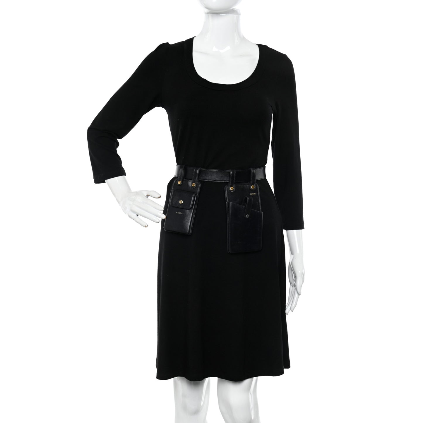 This is a stylish and authentic FENDI Vitello Glacier Utility Belt Pouch in Black. This belt is delightfully crafted of smooth calfskin leather in black. It features a belt with a gold tone buckle and two pouches, one for a with a closure strap phone and the other with a flap closure for cards. The pouches open to a black microfiber interior.Follow this item for alerts. Fendi is a registered trademark of Fendi. FASHIONPHILE is not affiliated with Fendi.