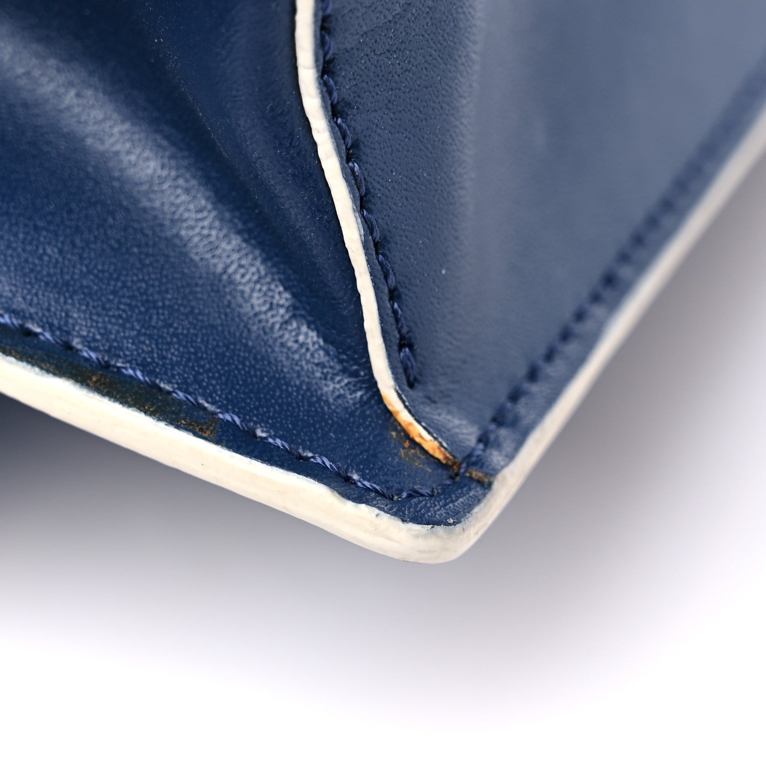 This is an authentic FENDI Vitello Liberty Pearl Scalloped Small Kan I Shoulder Bag Nebula in Blu Scuro. This shoulder bag is crafted of smooth calfskin leather in blue. The bag features white faux pearls lining the scalloped edges of the crossover flap, a silver chain link shoulder strap, and a silver and gold pyramid stud press lock on the front. This opens the bag to a partitioned taupe suede interior with a patch pocket.Follow this item for alerts. Fendi is a registered trademark of Fendi. FASHIONPHILE is not affiliated with Fendi.