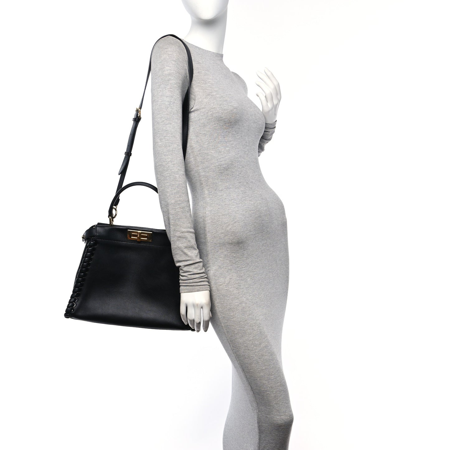 Fendi/ Bags/ Shoulder Bags /Fendi Vitello Seta Lace Up Medium Peekaboo Iconic Satchel Black