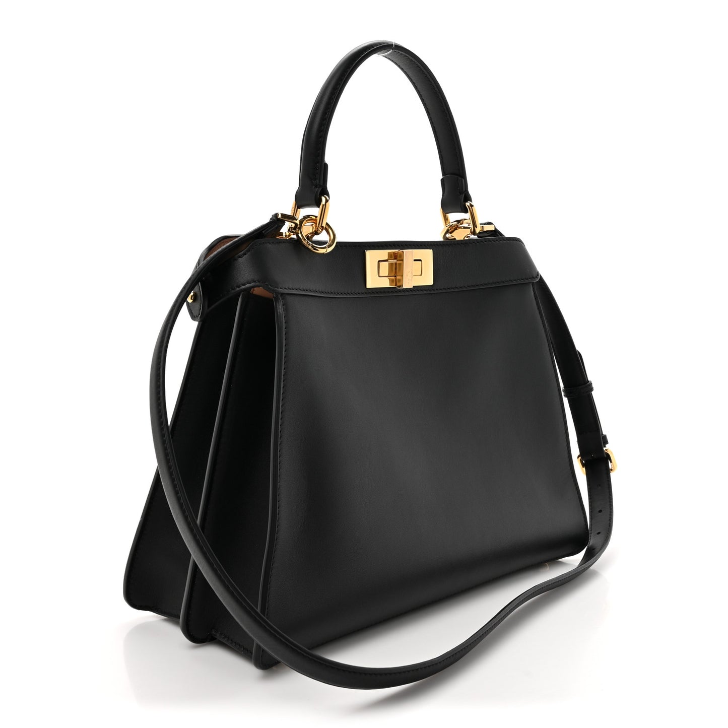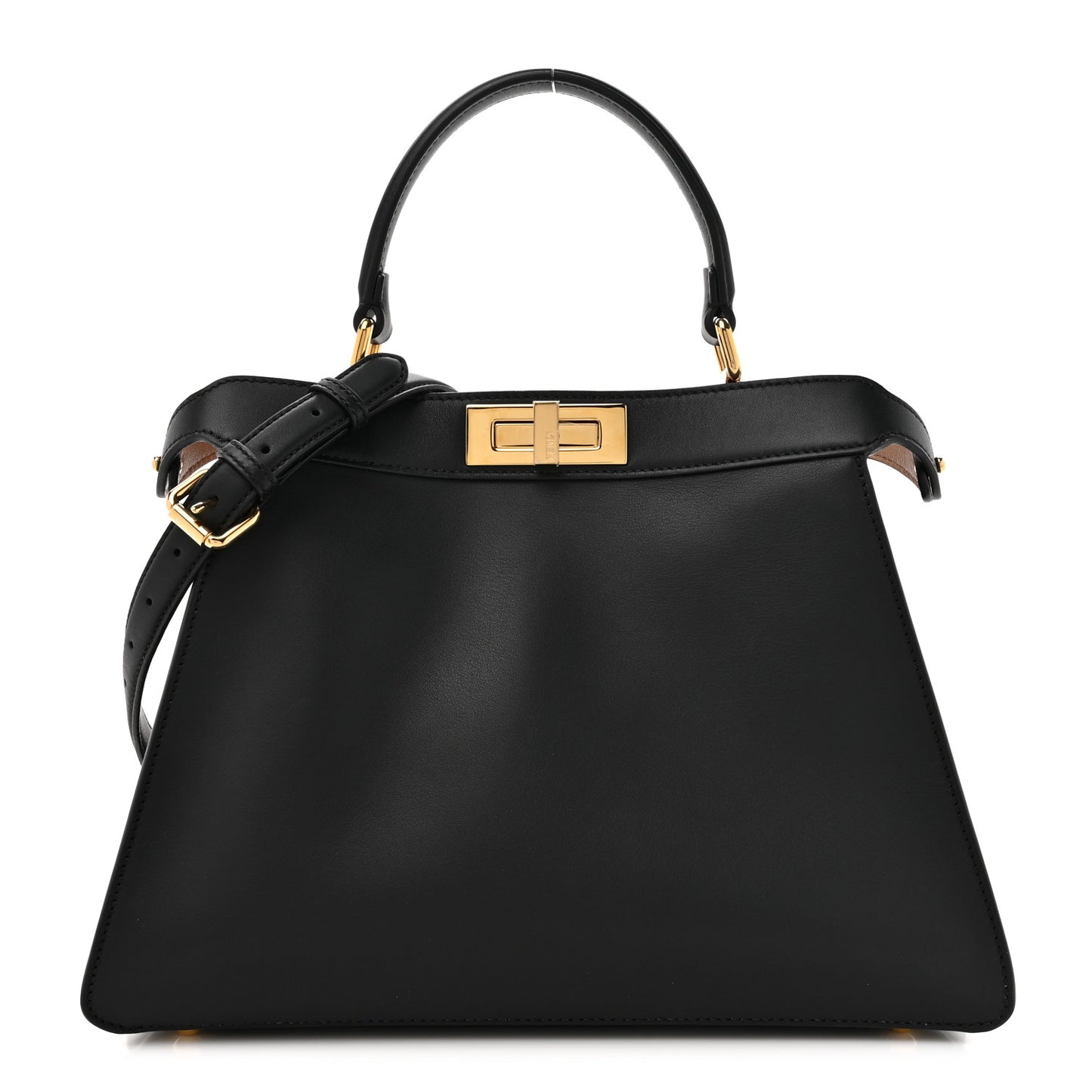 Fendi/ Bags/ Shoulder Bags /Fendi Vitello Seta Shiny Nappa Medium Peekaboo I SEE U Satchel Black Light Rose