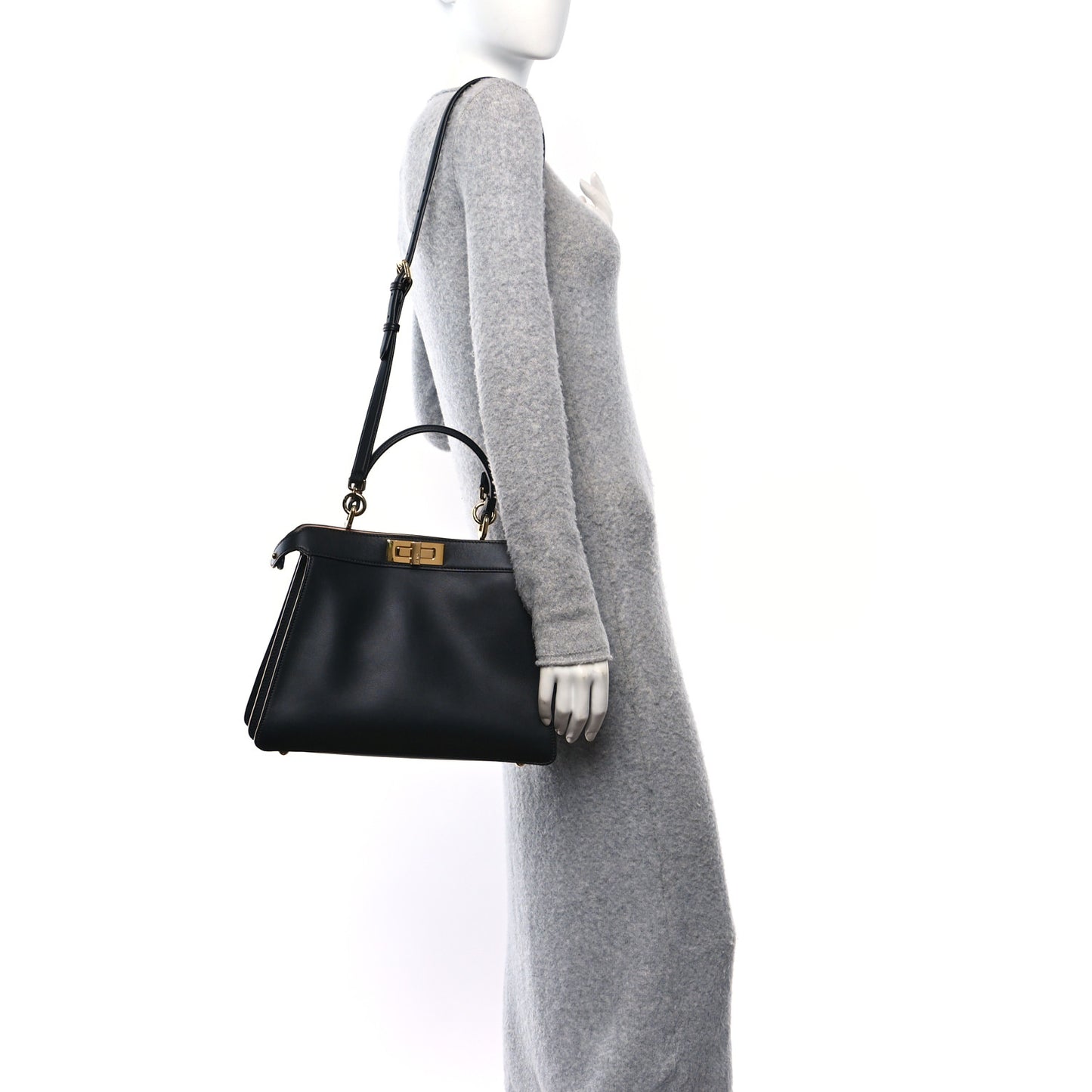 This is an authentic FENDI Vitello Seta Shiny Nappa Medium Peekaboo I SEE U Satchel in Black and Light Rose. This stylish bag is crafted of soft calfskin leather in black. The bag features a top handle, an optional shoulder strap, and gold hardware including Fendi logo turn locks on either side. These open to a partitioned pink leather interior with a removable insert.Follow this item for alerts. Fendi is a registered trademark of Fendi. FASHIONPHILE is not affiliated with Fendi.