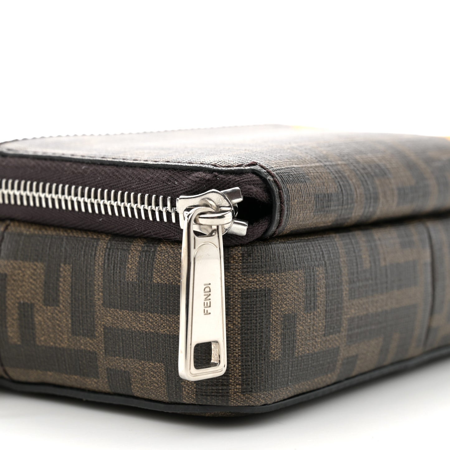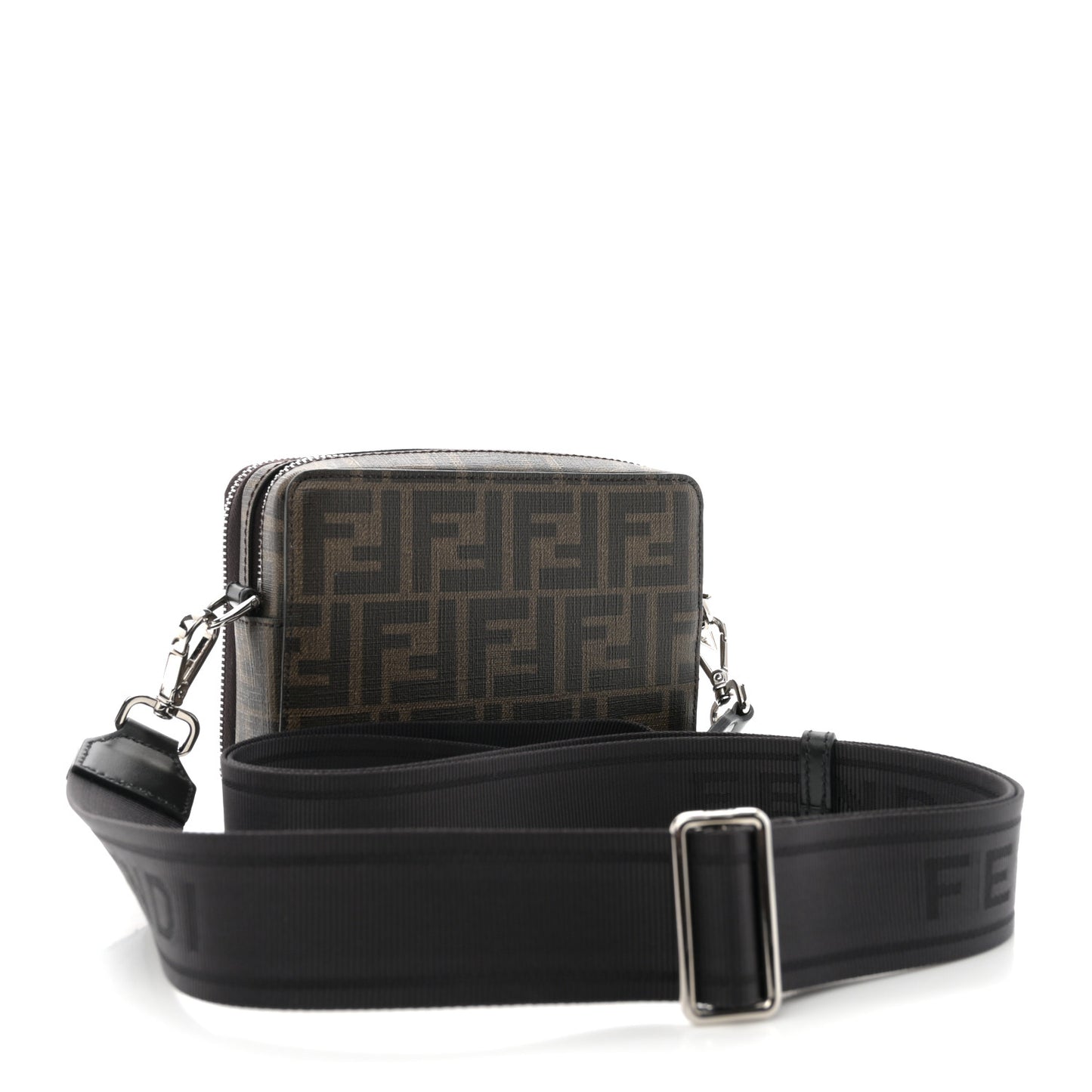 This is an authentic FENDI X FRGMT X POKEMON Glazed Fabric FF Pokemon Print Camera Case Tobacco, Moro, and Giallo. This camera case is crafted of Fendi FF canvas in tobacco brown. The bag features an pokemon Dragonite character overlay, a black canvas shoulder strap and silver hardware. The top zipper pull opens the bag to a brown fabric interior with leather card slots.Follow this item for alerts. Fendi is a registered trademark of Fendi. FASHIONPHILE is not affiliated with Fendi.