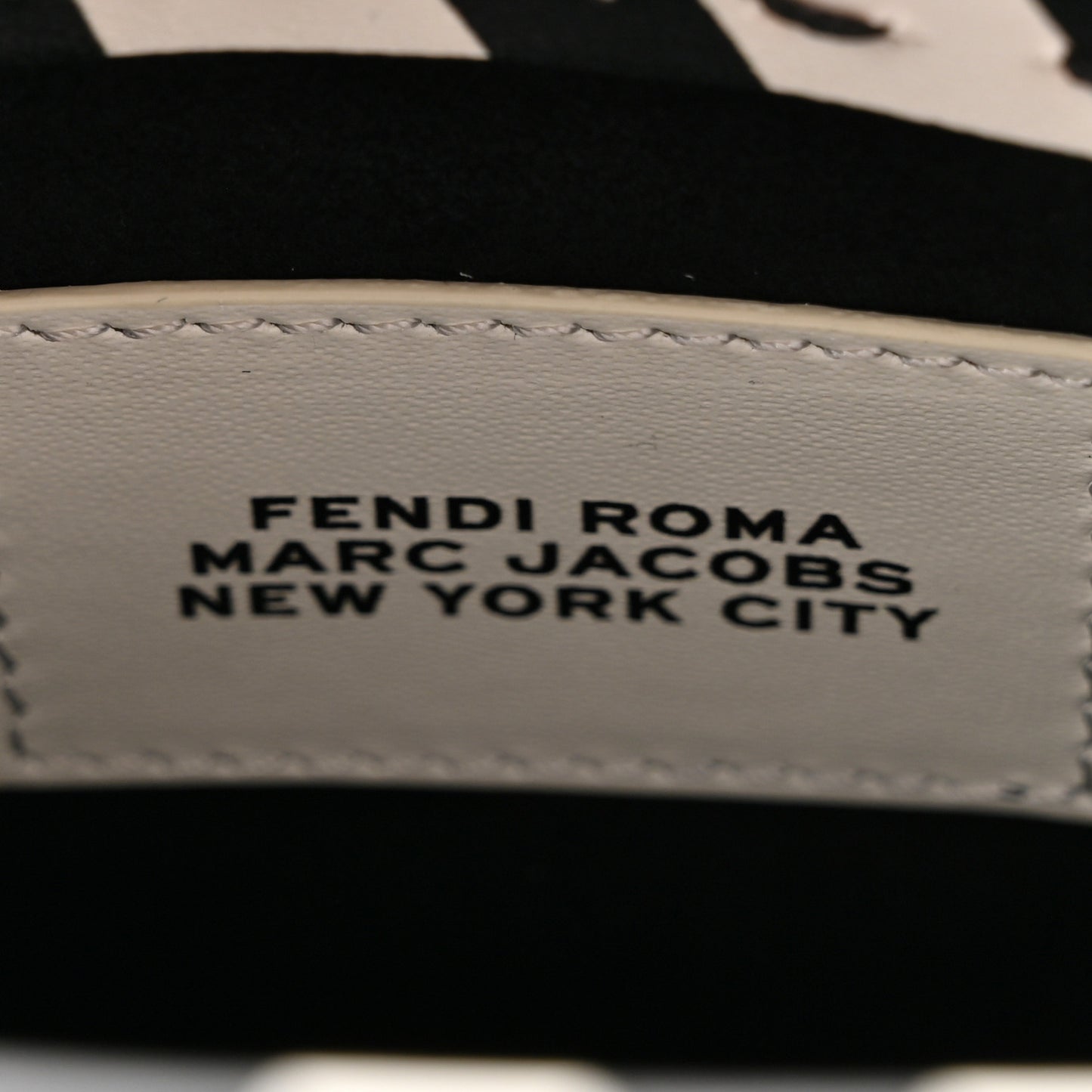 X MARC JACOBS Vitello King Plexiglass Logo Print Mini Fendi Sunshine Shopper Tote Black White