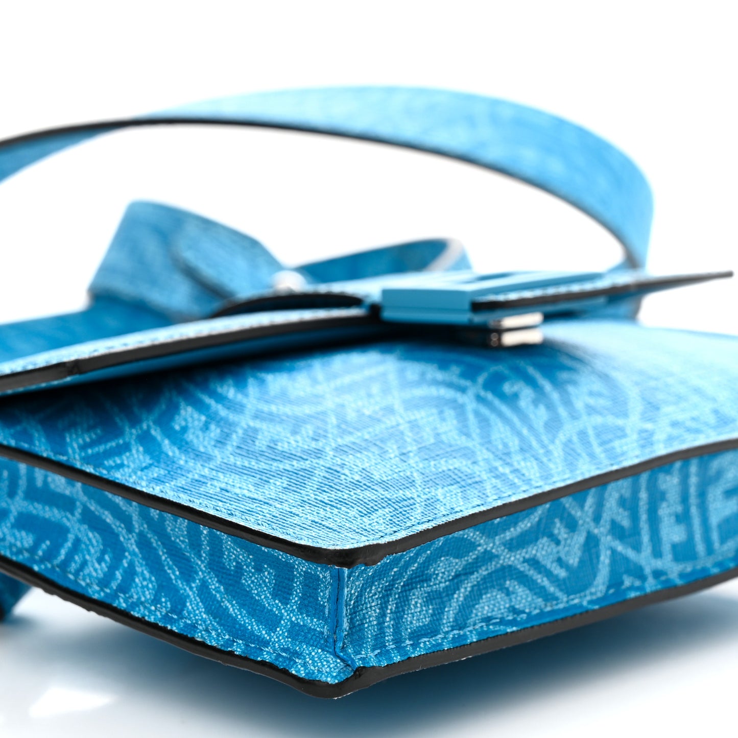 This is an authentic FENDI X SARAH COLEMAN Glazed Fabric Enamel Small FF Vertigo Baguette Belt Pouch in Cyber Blue. This bag is crafted of Fendi monogram glazed canvas in blue. The bag features a matching strap and crossover flap that opens with a prominent magnetic FF logo detail to a black fabric interior with a zipper pocket.Follow this item for alerts. Fendi is a registered trademark of Fendi. FASHIONPHILE is not affiliated with Fendi.