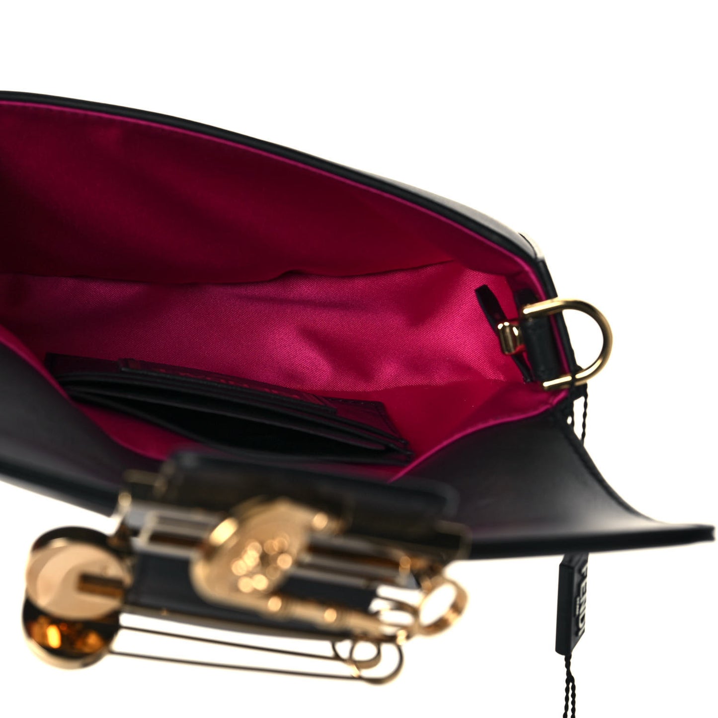 X VERSACE Vitello Seta Fendace Mini Brooch Baguette Black