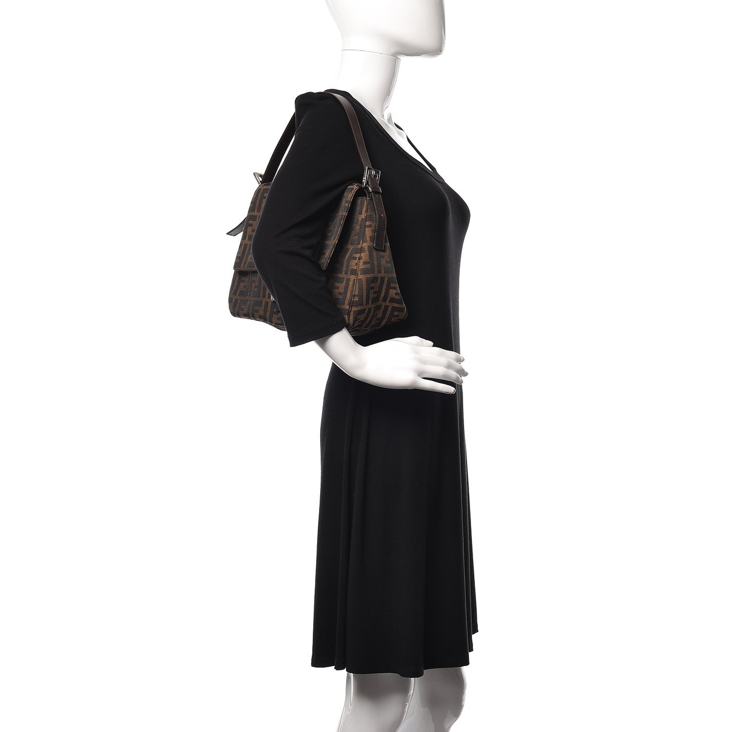 This is an authentic FENDI Zucca Mama Baguette in Tobacco. This stylish shoulder bag is finely crafted of Fendi Zucca canvas in tobacco brown. The bag features an adjustable chocolate brown leather shoulder strap and a facing flap with a polished silver Fendi FF logo. The flap opens to a brown fabric interior with a zipper pocket.Follow this item for alerts. Fendi is a registered trademark of Fendi. FASHIONPHILE is not affiliated with Fendi.