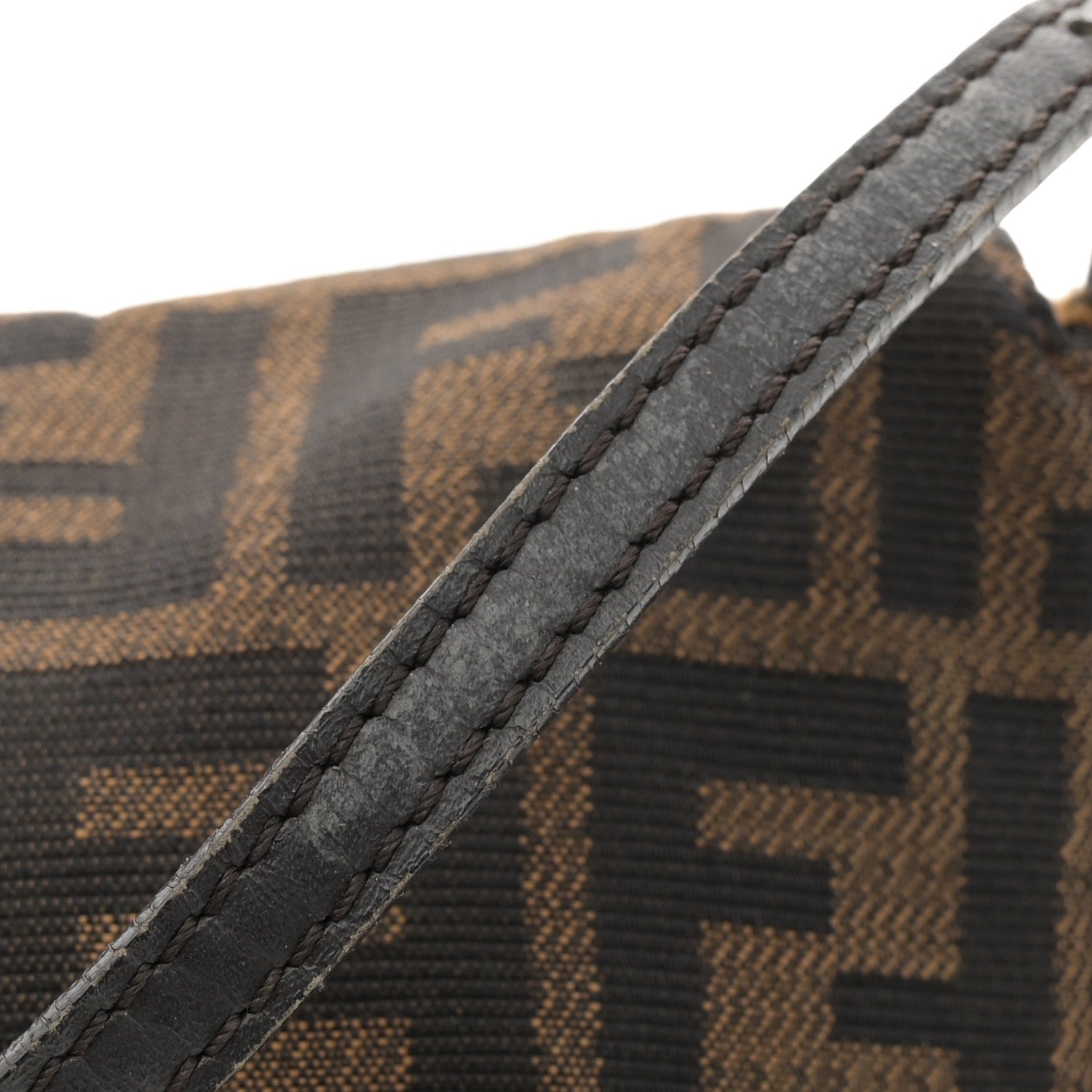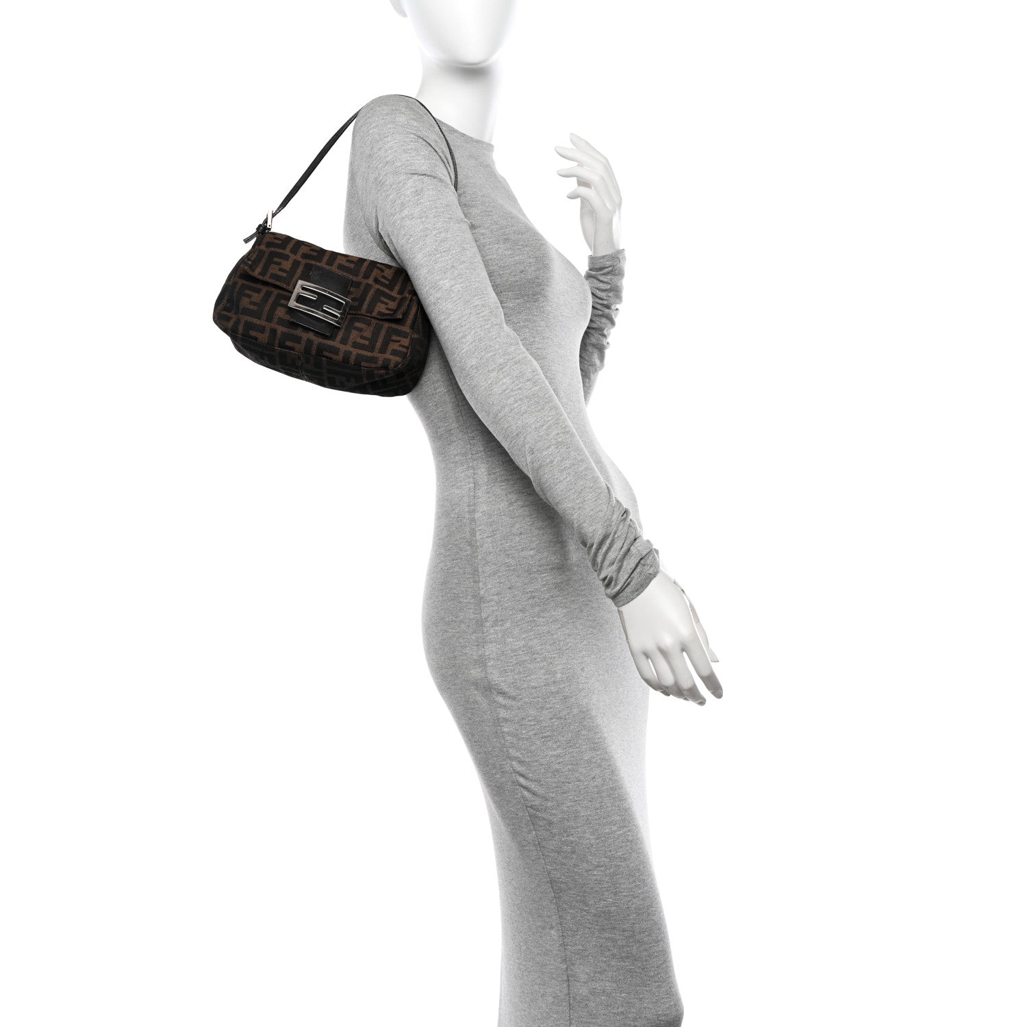 This is an authentic FENDI Zucca Mini Mama Baguette in Tobacco. This stylish baguette is crafted of tobacco-colored Fendi FF on Zucca canvas. The bag features a dark chocolate brown looping leather shoulder strap and trim with a facing flap and polished silver hardware with the FF logo. This opens to a brown fabric interior with a patch pocket.Follow this item for alerts. Fendi is a registered trademark of Fendi. FASHIONPHILE is not affiliated with Fendi.