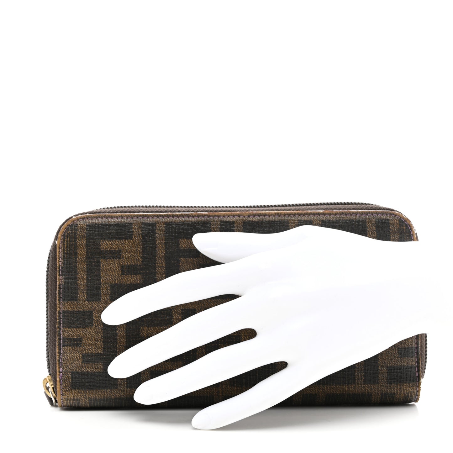Fendi/ Accessories/ Wallets /Fendi Zucca Spalmati Vitello Elite Zip Around Wallet Tobacco Viola