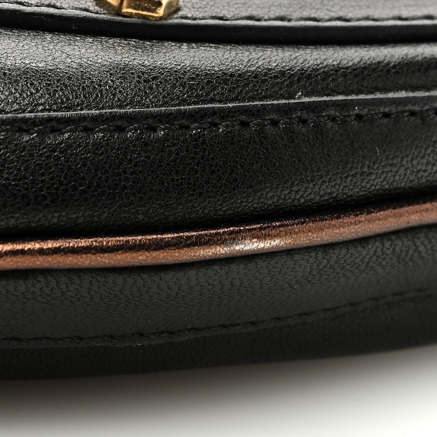 This is an authentic Fendi Lambskin Mini Vanity Mirror Clutch Bag in Black. This chic clutch is crafted of smooth lambskin leather. The bag features a leather top handle, bronze leather trim, a front mirror and gold hardware. The flap opens to a brown fabric interior with patch pocket.Follow this item for alerts. Fendi is a registered trademark of Fendi. FASHIONPHILE is not affiliated with Fendi.