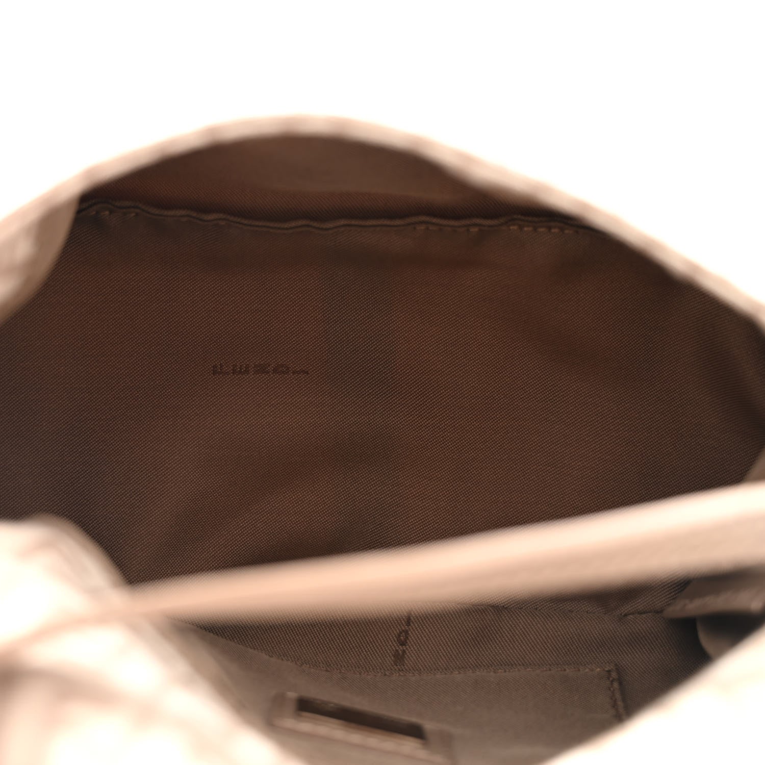 This is an authentic FENDI Zucchino Mini Mama Baguette in Beige Tortora Pietra. This super chic baguette is crafted of beige Fendi Zucchino canvas. The bag features an adjustable leather strap and silver buckles with a frontal leather strap and a silver FF logo. The flap opens with a magnet to a brown logo jacquard interior with a patch pocket.Follow this item for alerts. Fendi is a registered trademark of Fendi. FASHIONPHILE is not affiliated with Fendi.