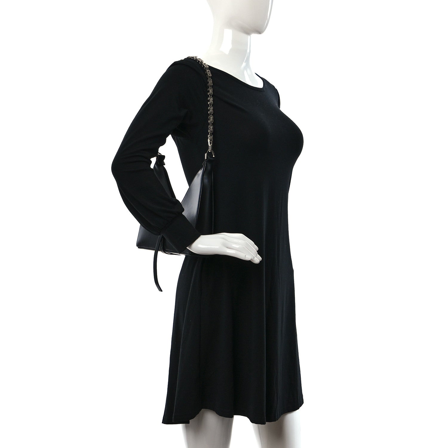 This is an authentic GIVENCHY Box Calfskin Mini Cut Out Shoulder Bag in Black. This sleek tote is crafted of luxuriously polished smooth leather in black. The bag features a chain shoulder strap. The top opens to a black leather interior.