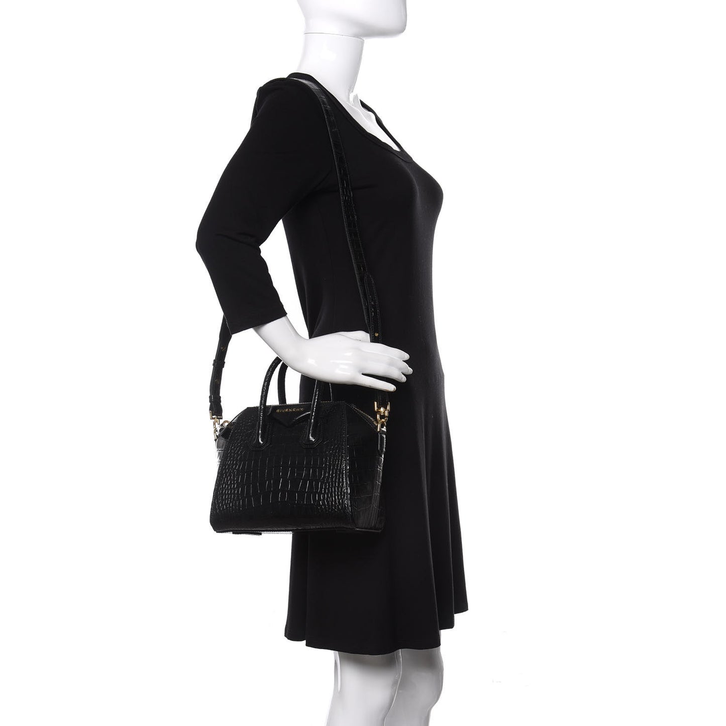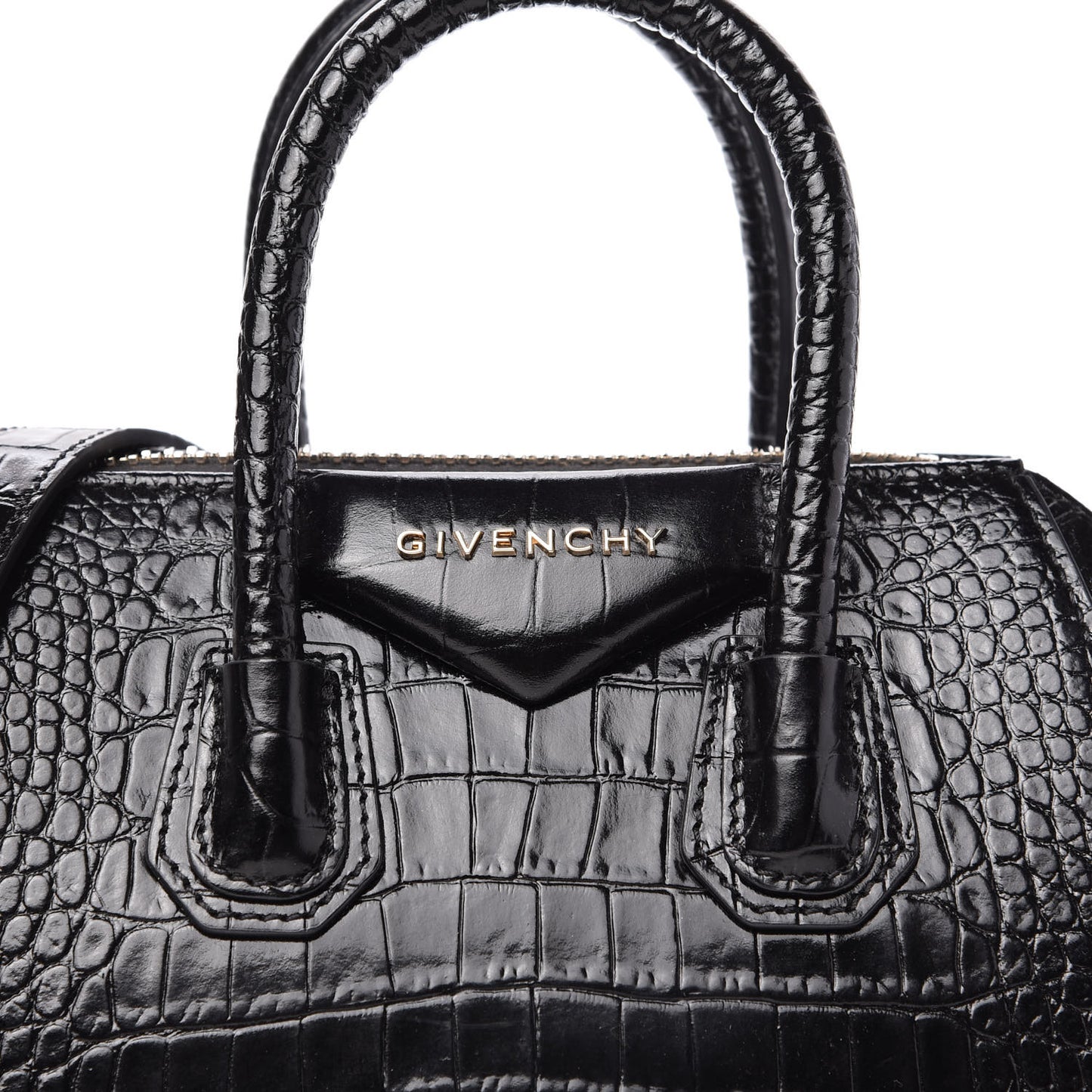 Givenchy/ Bags/ Shoulder Bags /Givenchy Calfskin Crocodile Embossed Mini Antigona Black