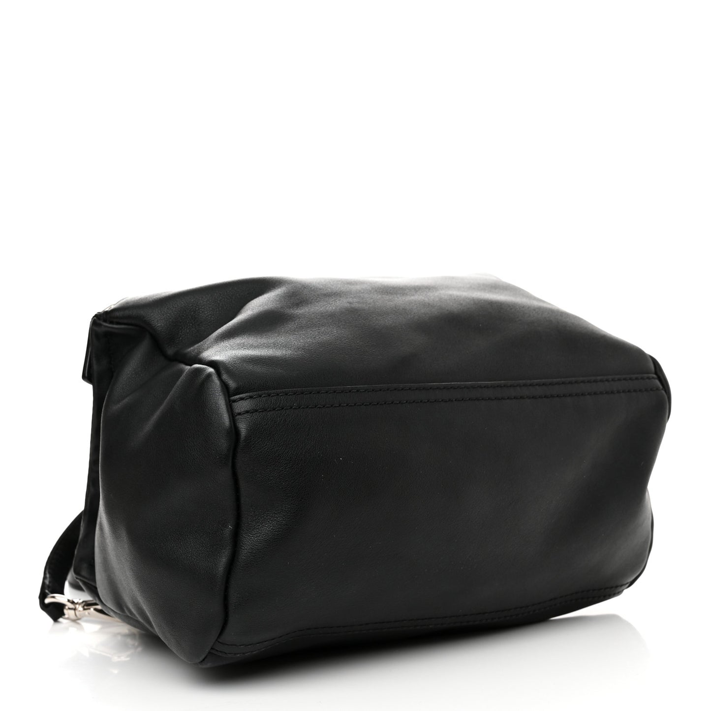 This is an authentic GIVENCHY Calfskin Embellished Small Pandora in Black. This chic messenger bag is finely crafted of smooth calfskin leather with an embellished front. The shoulder bag features a rolled leather top handle, an optional cross-body strap, polished silver hardware, and an exterior pocket. This bag features two top zippers with the main compartment opening to a black fabric interior with zipper and patch pockets.Follow this item for alerts. Givenchy is a registered trademark of Givenchy. FASHIONPHILE is not affiliated with Givenchy.