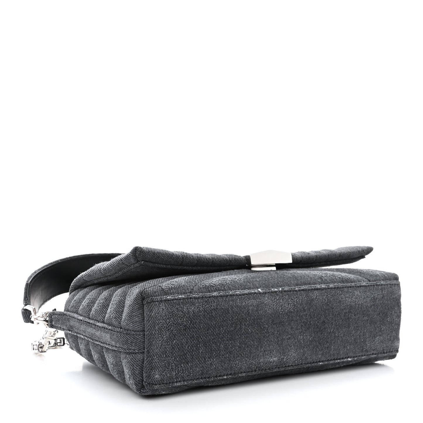 Distressed Denim Quilted Small 4G Shoulder Bag Black