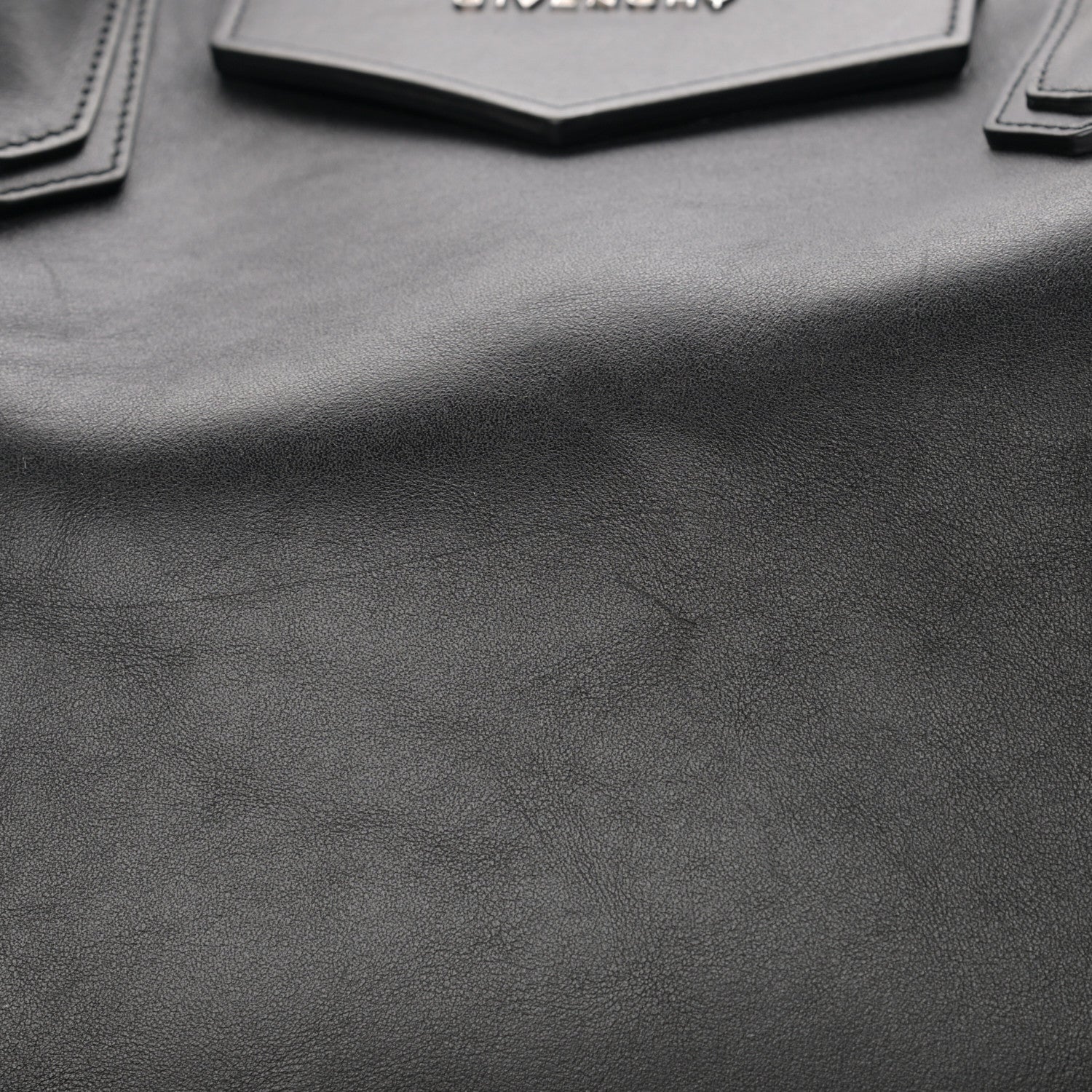 This is an authentic GIVENCHY Smooth Calfskin Medium Soft Antigona in Black. This tote is crafted of calfskin leather in black. It features sturdy rolled leather top handles, an optional leather shoulder strap with silver hardware, and extended sides. The top zipper to a beige fabric interior with patch pockets.Follow this item for alerts. Givenchy is a registered trademark of Givenchy. FASHIONPHILE is not affiliated with Givenchy.