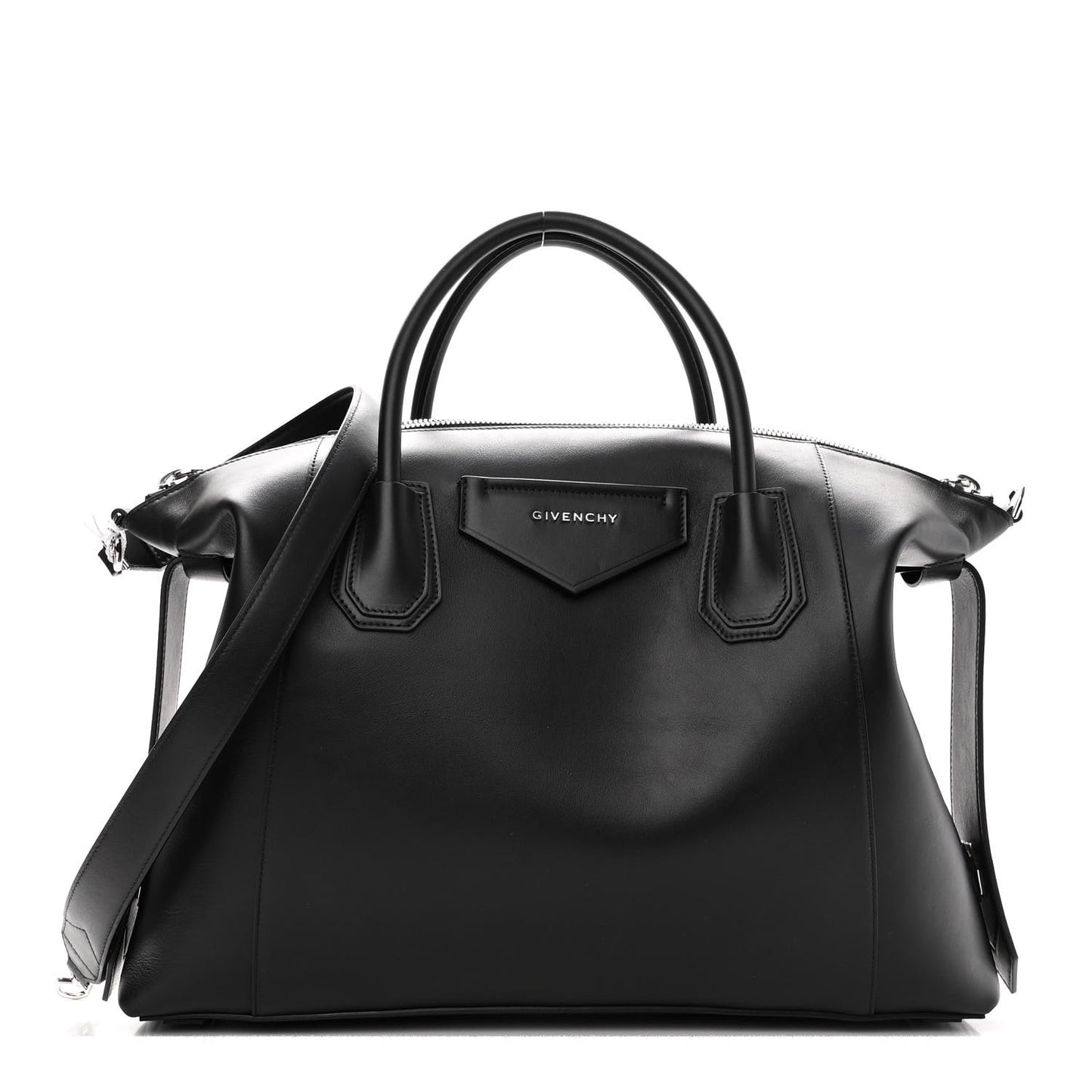 This is an authentic GIVENCHY Smooth Calfskin Medium Soft Antigona in Black. This tote is crafted of calfskin leather in black. It features sturdy rolled leather top handles, an optional leather shoulder strap with silver hardware, and extended sides. The top zipper to a beige fabric interior with leather pockets.Follow this item for alerts. Givenchy is a registered trademark of Givenchy. FASHIONPHILE is not affiliated with Givenchy.
