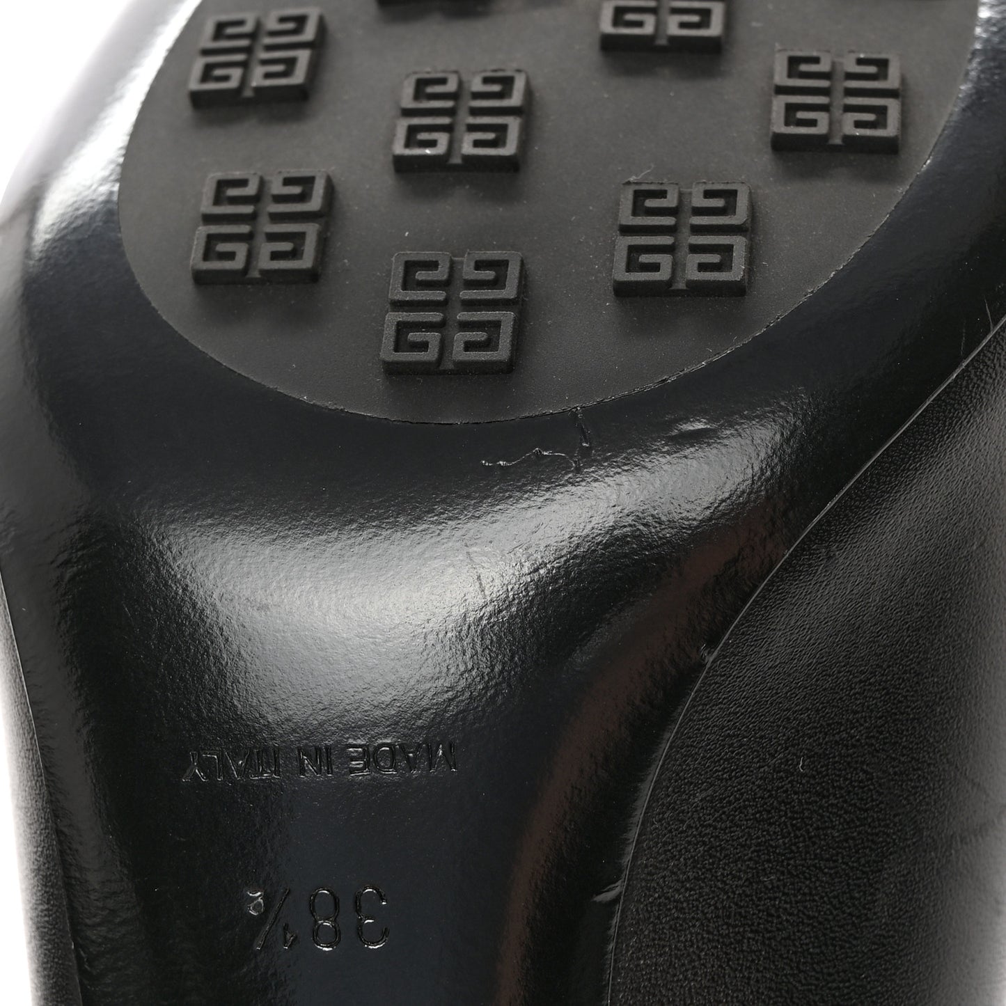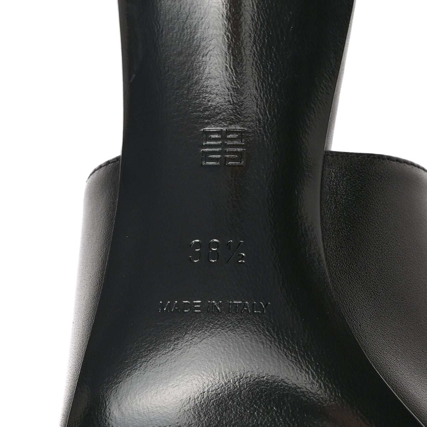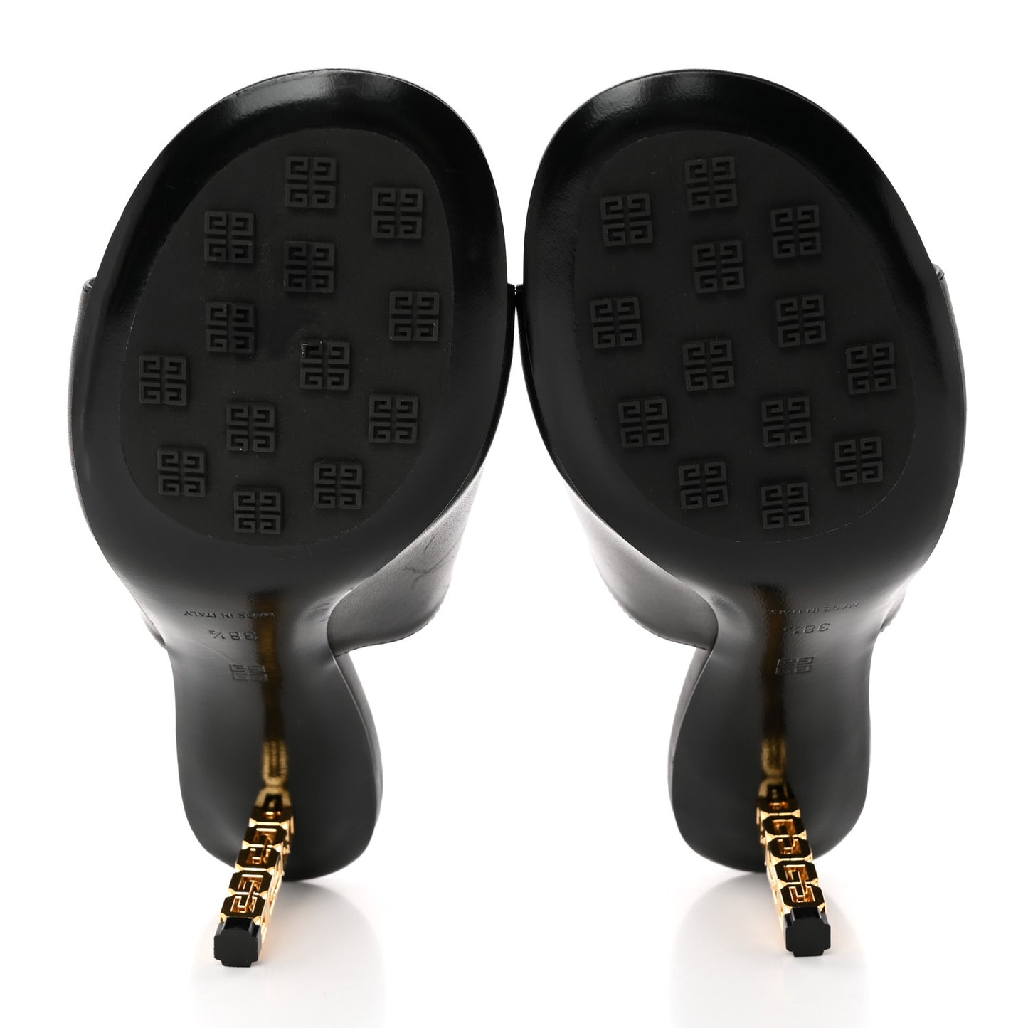 This is an authentic pair of GIVENCHY Smooth Nappa G Cube Mule Sandals size 38.5 in Black. These high heel mule sandals are crafted of leather in black leather with a 2.25-inch gold logo hardware heel.Follow this item for alerts. Givenchy is a registered trademark of Givenchy. FASHIONPHILE is not affiliated with Givenchy.
