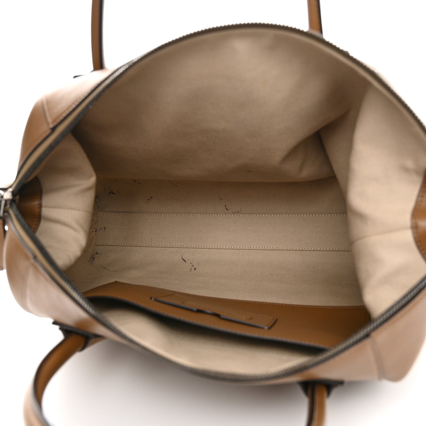 This is an authentic GIVENCHY Soft Calfskin Medium Soft Antigona in Military Green. This elegant shoulder bag is composed of luxuriously smooth calfskin leather in a brown. The handbag features rolled leather top handles. The top zipper opens to a beige fabric interior with pockets.