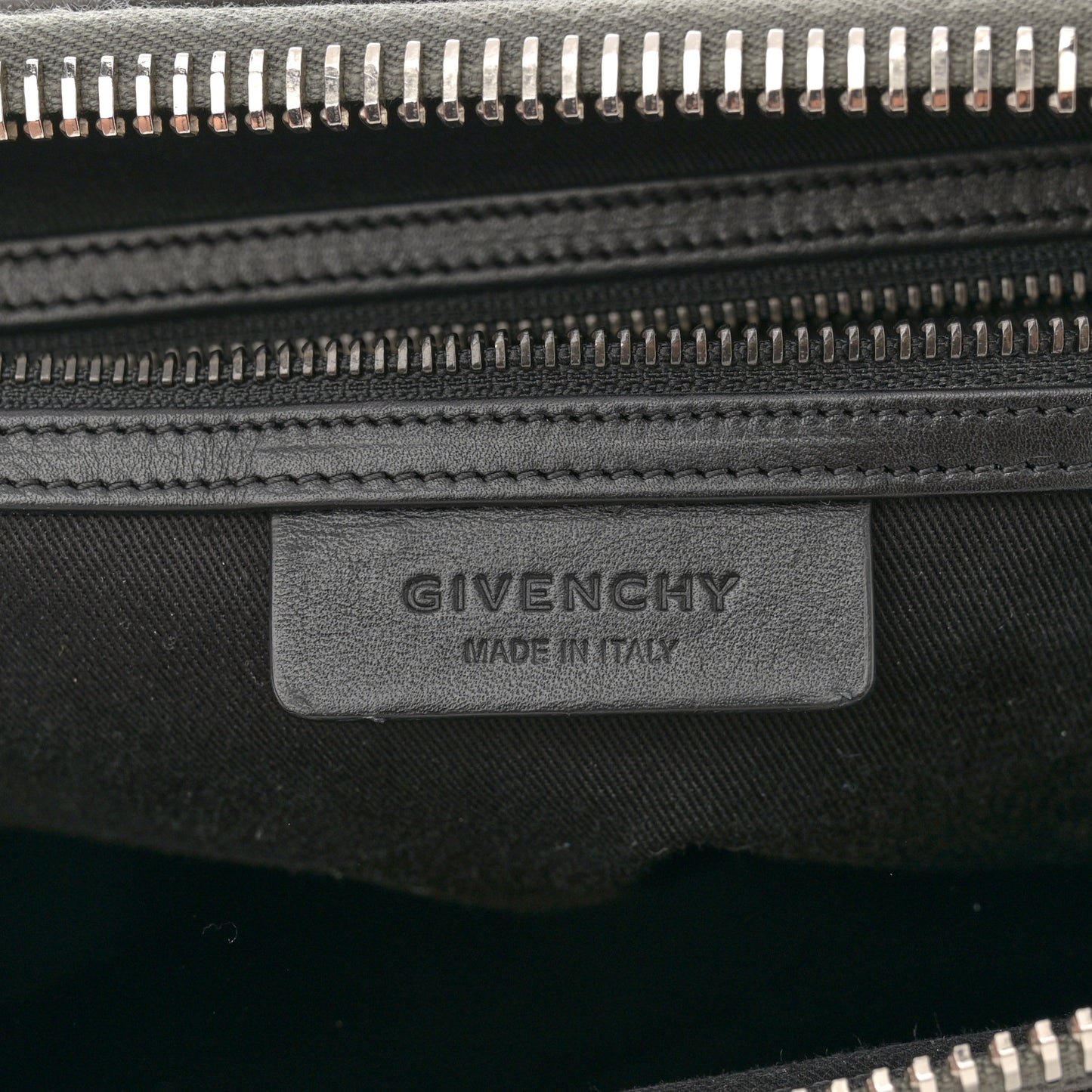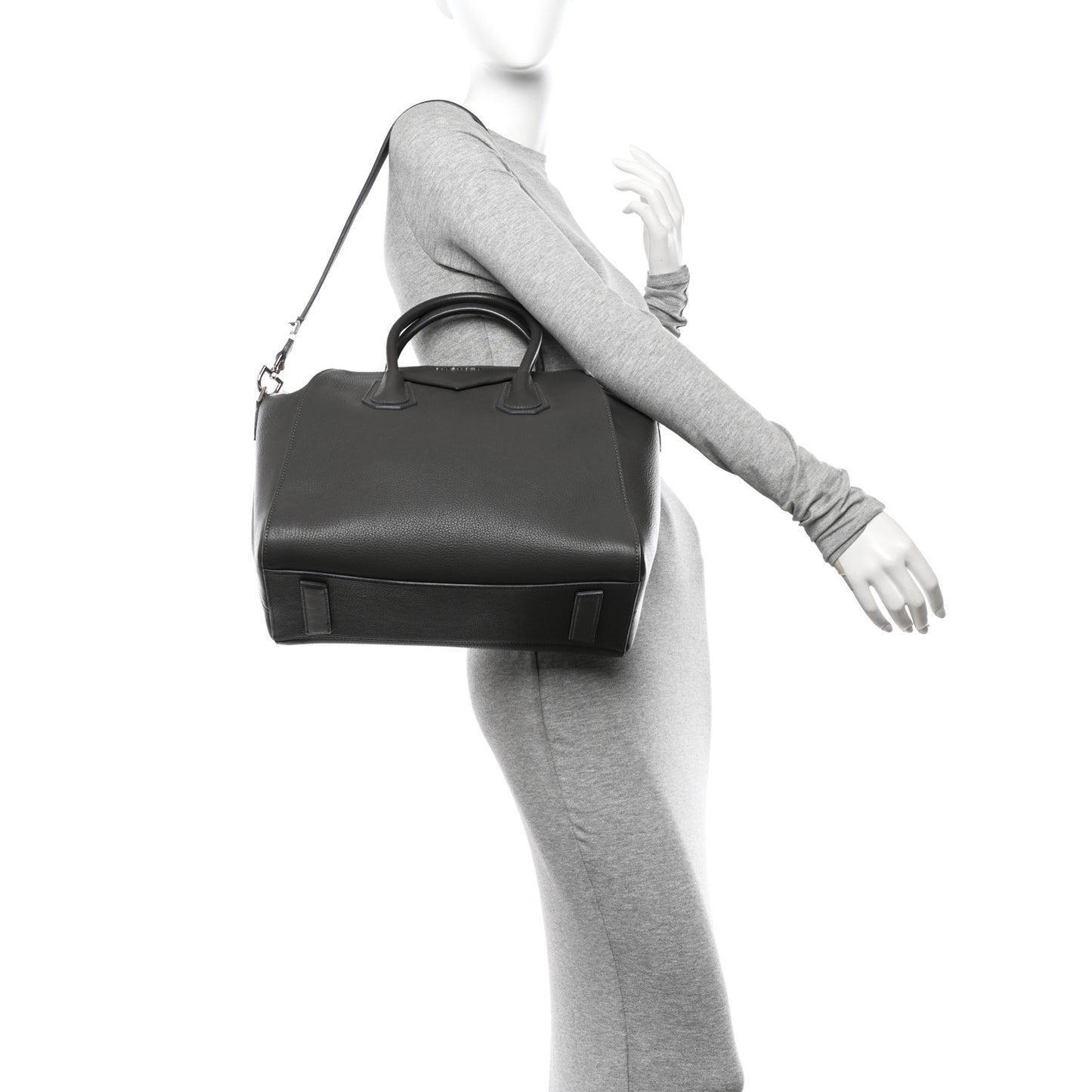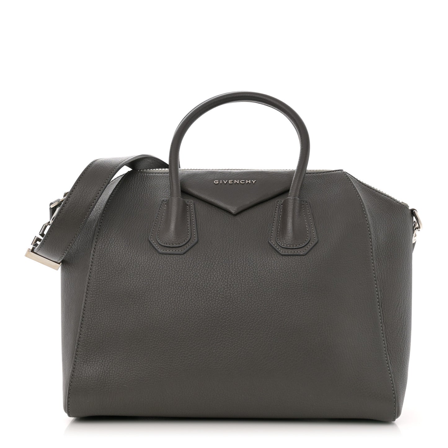 This is an authentic GIVENCHY Sugar Goatskin Medium Antigona in Dark Grey. This elegant model is composed of luxuriously textured goatskin leather in dark grey. It features rolled leather top handles, a leather shoulder strap with polished silver hardware. The top opens with a zipper to a black fabric interior with pockets.Follow this item for alerts. Givenchy is a registered trademark of Givenchy. FASHIONPHILE is not affiliated with Givenchy.