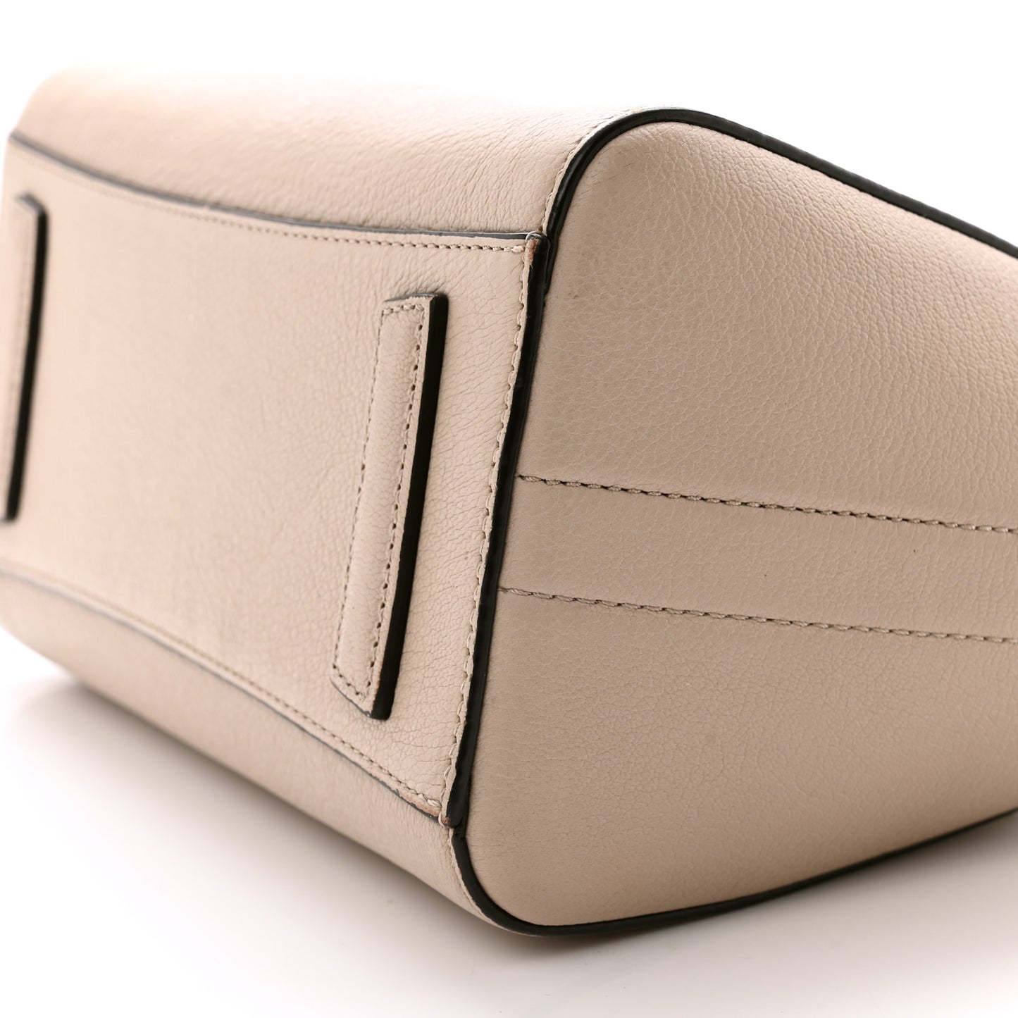 This is an authentic GIVENCHY Sugar Goatskin Mini Antigona in Dune. This elegant handbag is composed of luxuriously grained goatskin leather in light beige. This bag features rolled leather top handles and an optional leather shoulder strap with silver hardware. The top opens with a zipper to a beige fabric interior with zipper and patch pockets.Follow this item for alerts. Givenchy is a registered trademark of Givenchy. FASHIONPHILE is not affiliated with Givenchy.