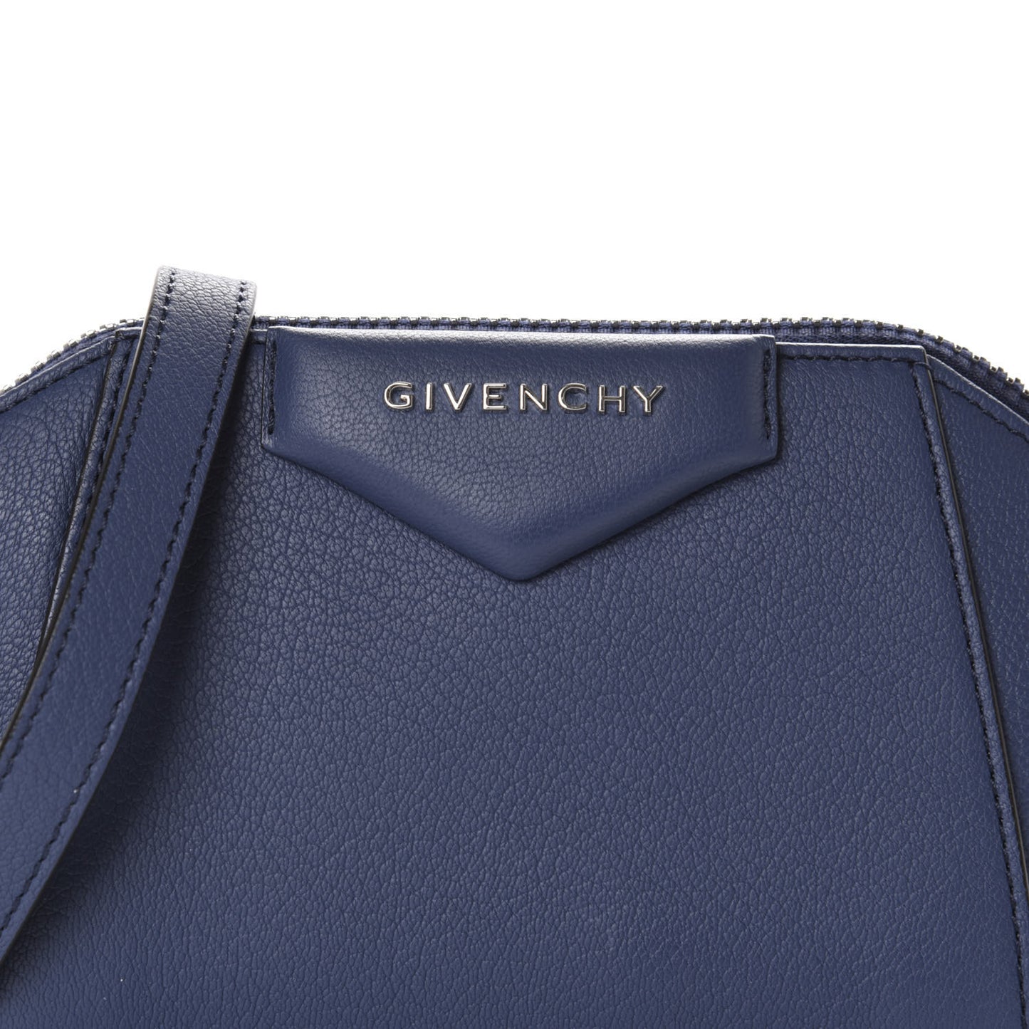 This is an authentic GIVENCHY Sugar Goatskin Nano Antigona in Midnight Blue. This elegantly structured crossbody is crafted of luxuriously grained goatskin leather in blue. The bag features a matching adjustable shoulder strap, silver hardware, and extended sides. The top opens to a beige fabric interior with a flat pocket. This shoulder bag is suitable for day or evening, from Givenchy!Follow this item for alerts. Givenchy is a registered trademark of Givenchy. FASHIONPHILE is not affiliated with Givenchy.