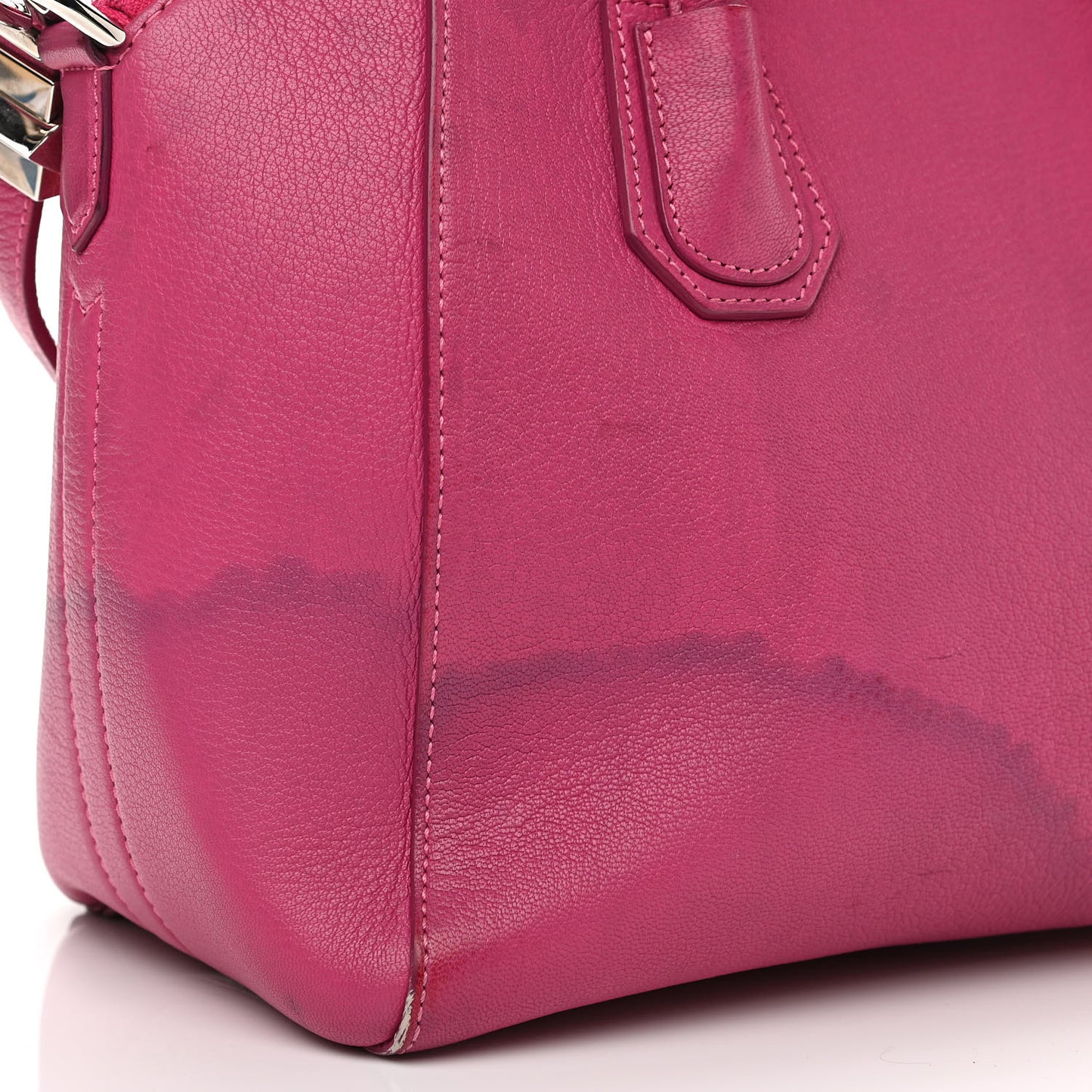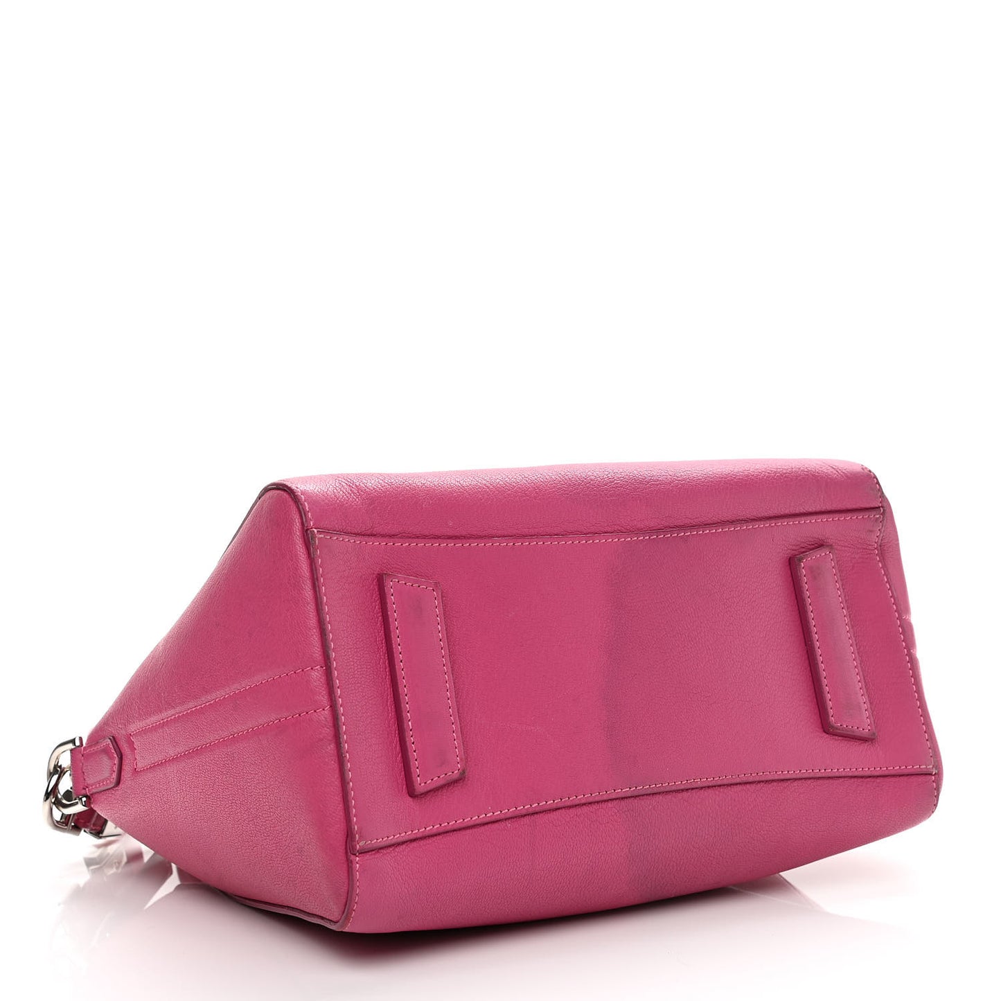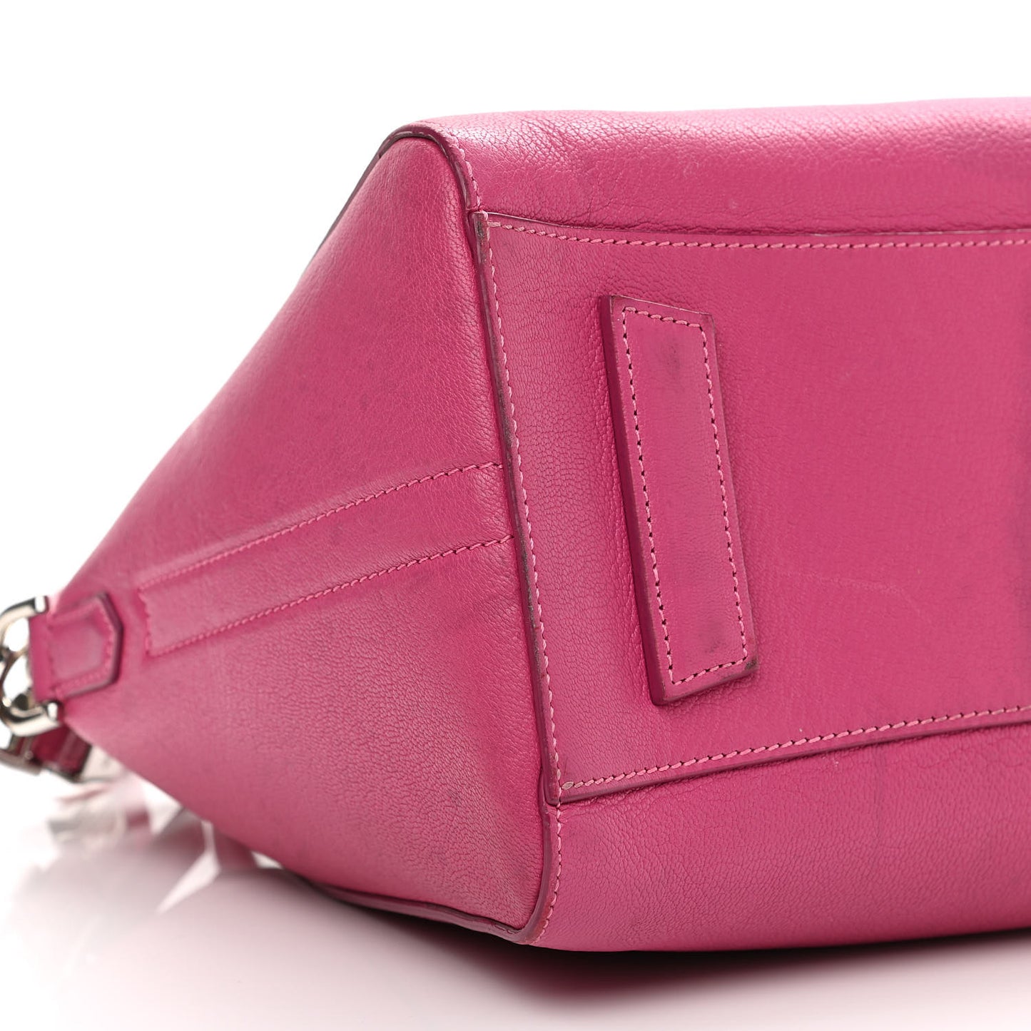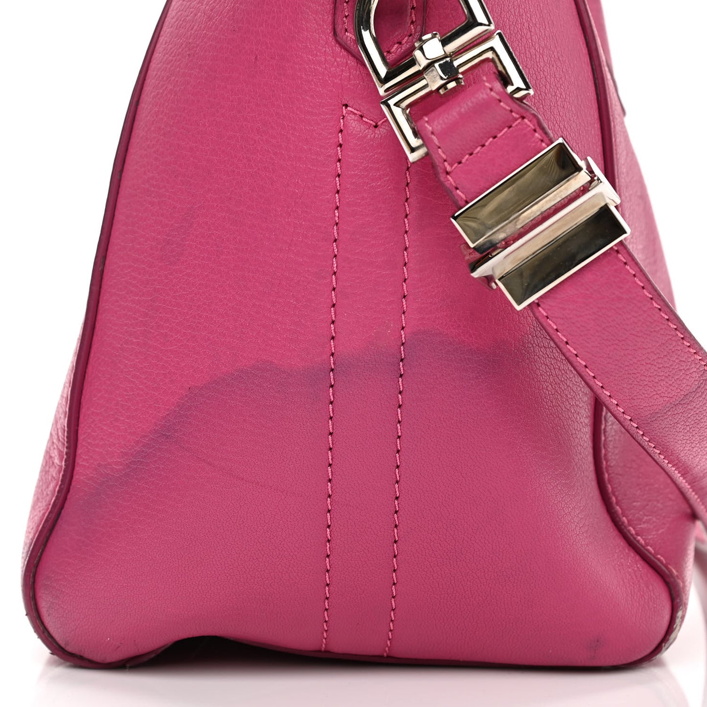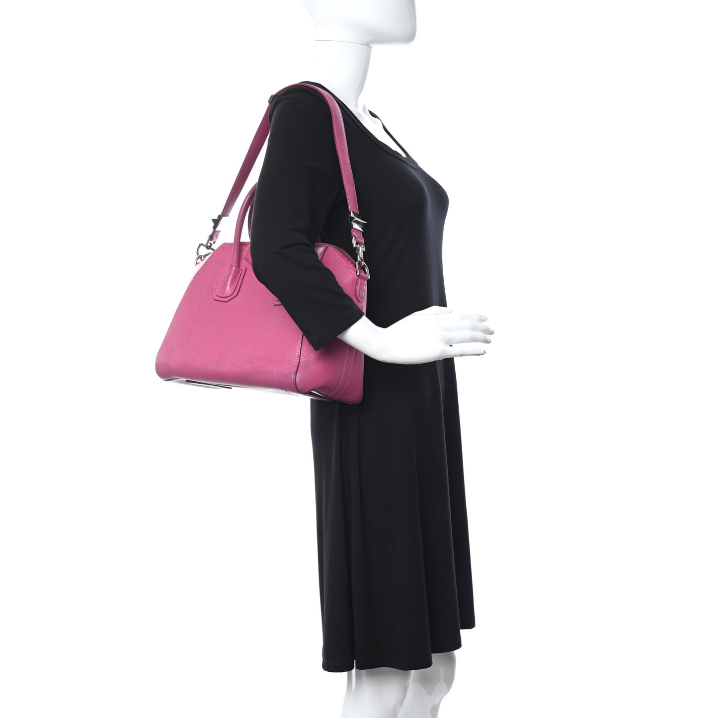 This is an authentic GIVENCHY Sugar Goatskin Small Antigona in Fuchsia. This elegant model is crafted of luxurious grained goatskin leather in deep pink. It features rolled leather top handles and a leather shoulder strap with polished silver hardware. The top opens with a zipper to a black fabric interior with zipper and patch pockets.Follow this item for alerts. Givenchy is a registered trademark of Givenchy. FASHIONPHILE is not affiliated with Givenchy.