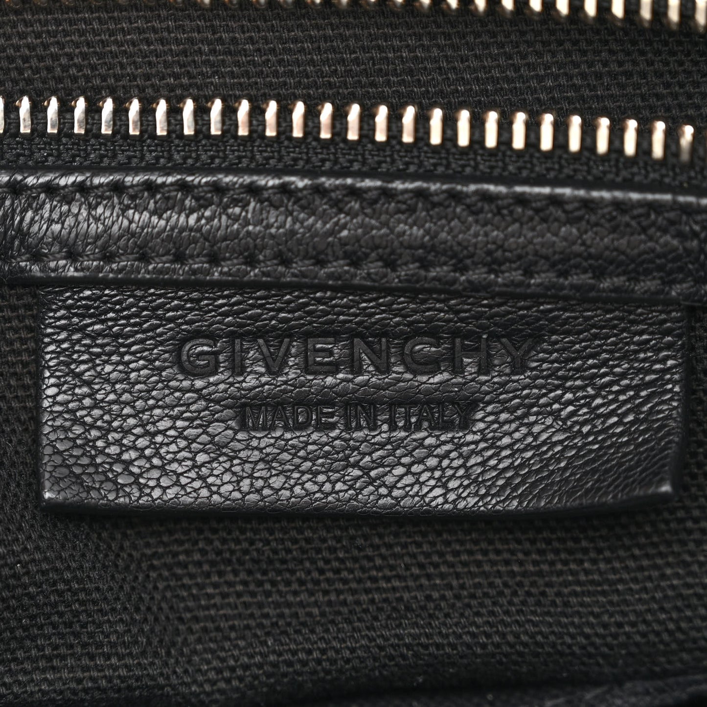 This is an authentic GIVENCHY Sugar Goatskin Small Pandora in Black. This chic handbag is crafted of grained goatskin leather in black. The bag features a front zipper pocket, a rolled leather top handle, and an optional leather crossbody strap with polished silver hardware. The top zipper opens the main compartment to a matching fabric interior with zipper and patch pockets.Follow this item for alerts. Givenchy is a registered trademark of Givenchy. FASHIONPHILE is not affiliated with Givenchy.