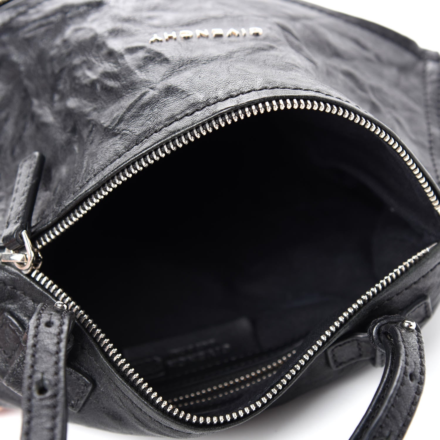 This is an authentic GIVENCHY Tumbled Sheepskin Mini Pandora in Black. This chic messenger bag is finely crafted of soft distressed sheepskin leather in black. The bag features an external zipper pocket on the front, an adjustable leather body strap, and silver hardware. The main top zipper opens to a black fabric interior with a zipper pocket.Follow this item for alerts. Givenchy is a registered trademark of Givenchy. FASHIONPHILE is not affiliated with Givenchy.