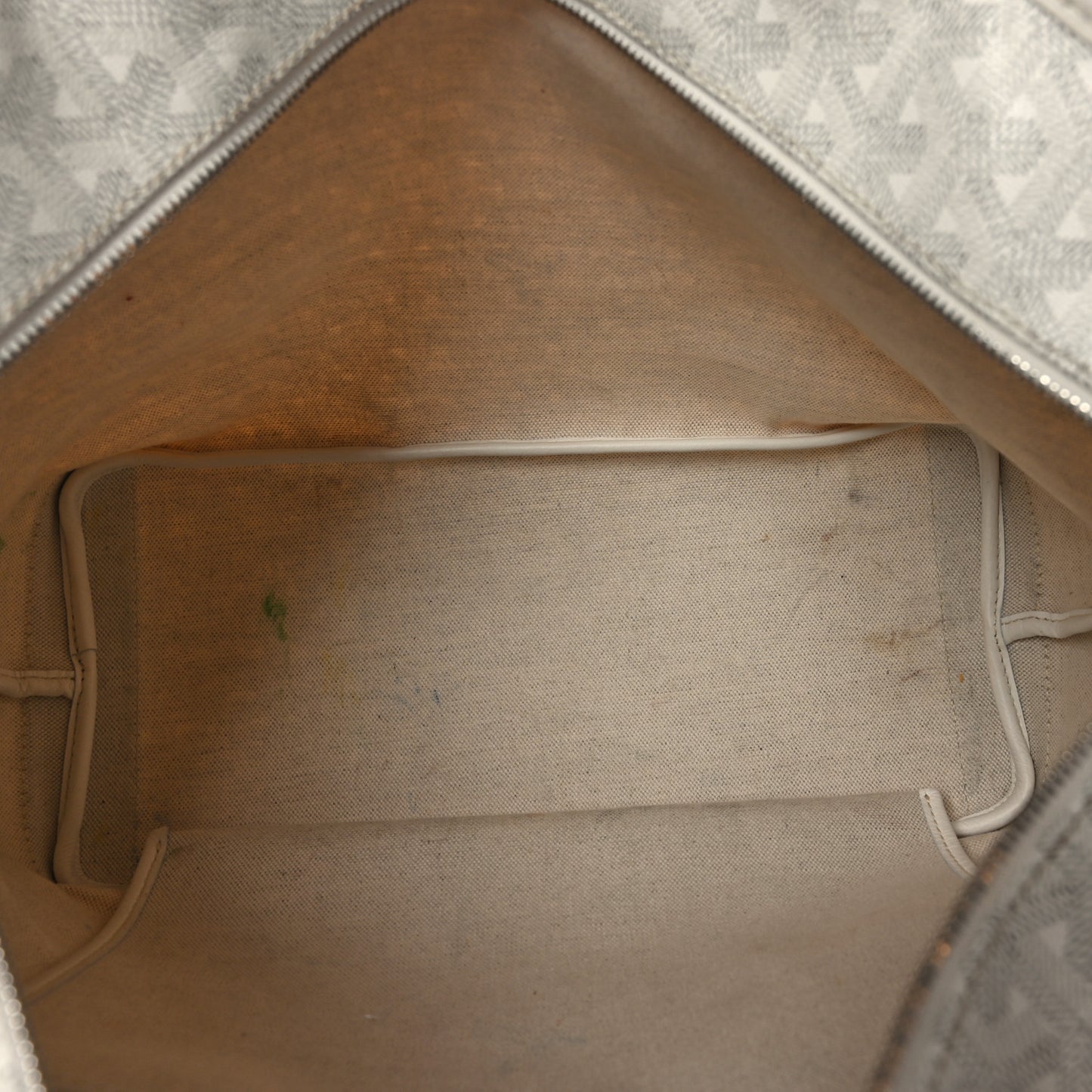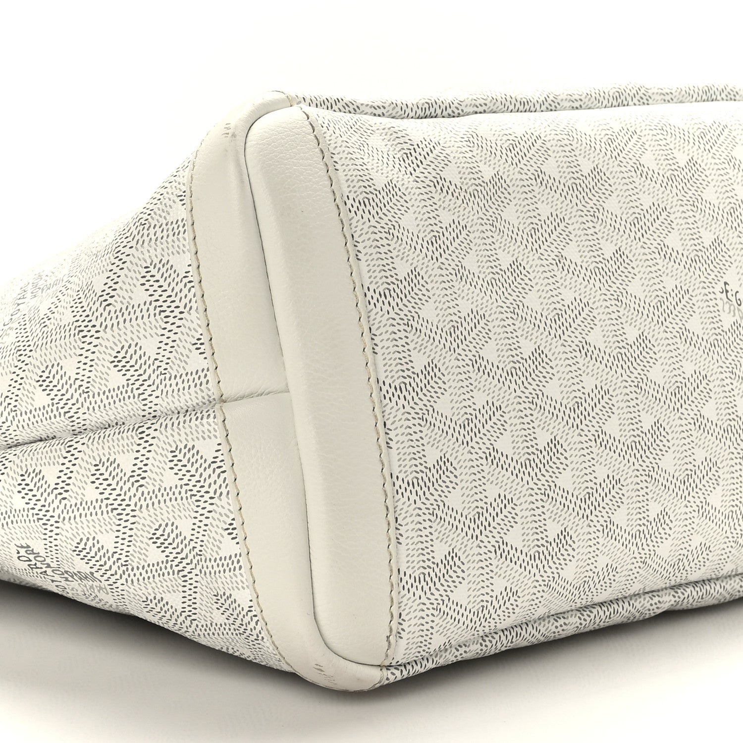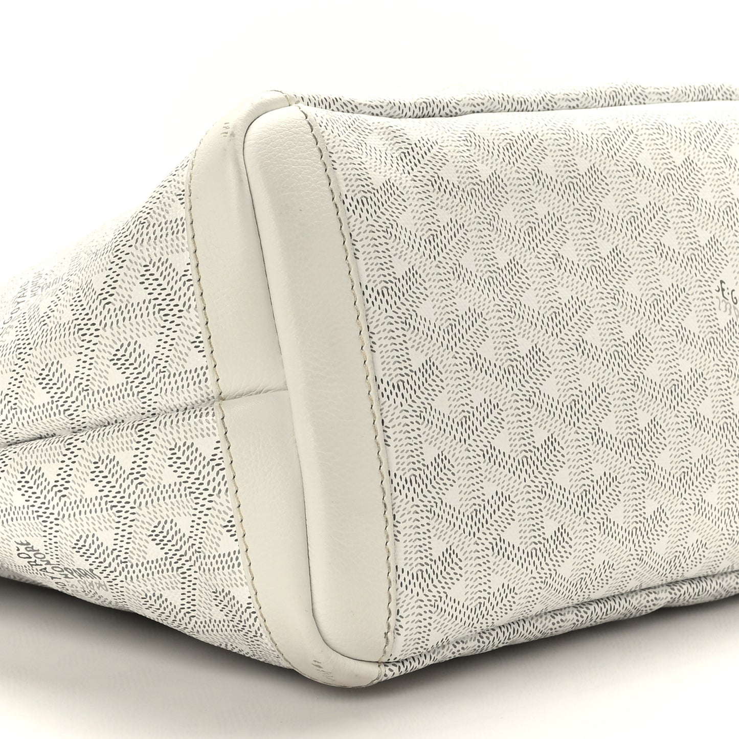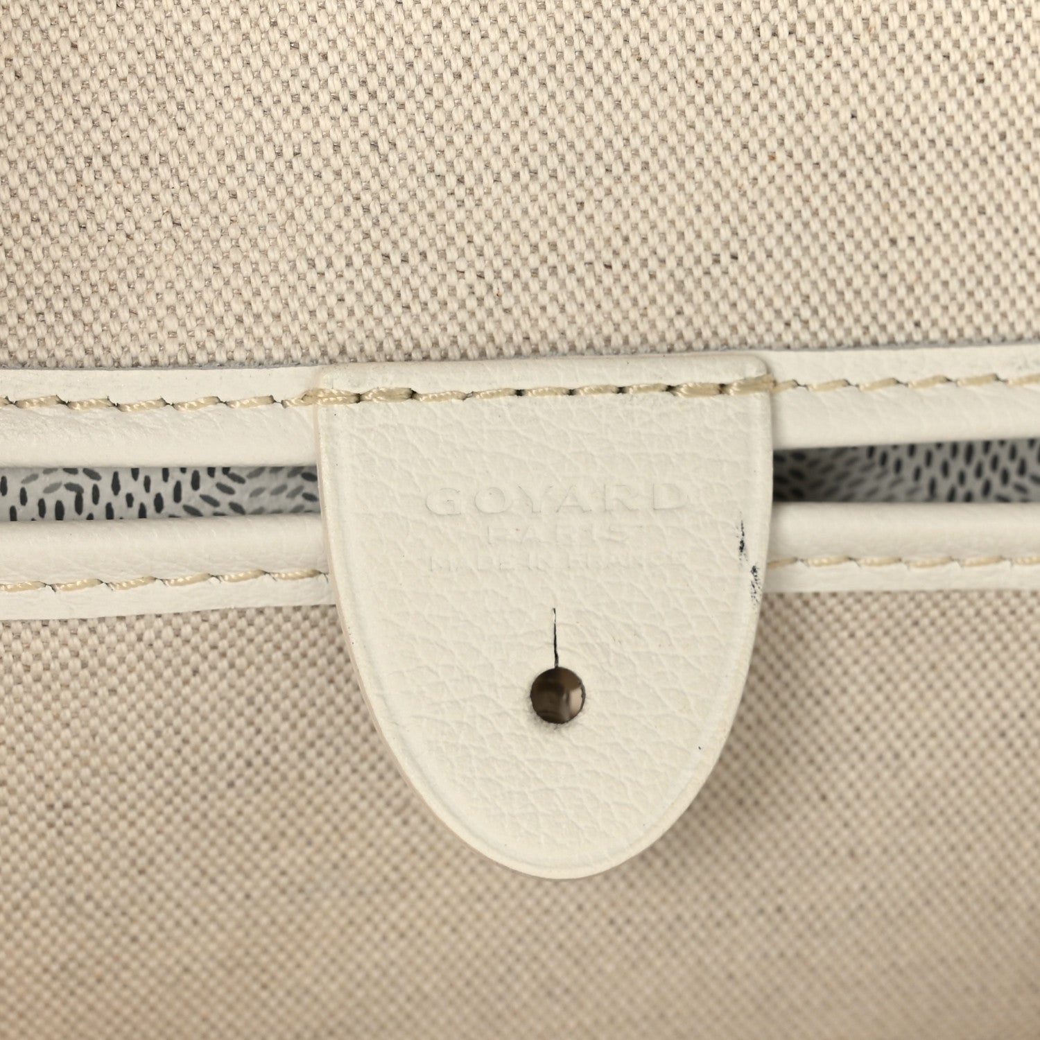 This is an authentic GOYARD Goyardine Artois PM White. This tote is crafted of goyardine-coated canvas with its iconic chevron pattern. It features a white leather trim including strap handles, top trim, and protective corner patches. The top zipper opens to a spacious off-white canvas interior with a hanging patch pocket.Follow this item for alerts. Goyard is a registered trademark of Goyard. FASHIONPHILE is not affiliated with Goyard.