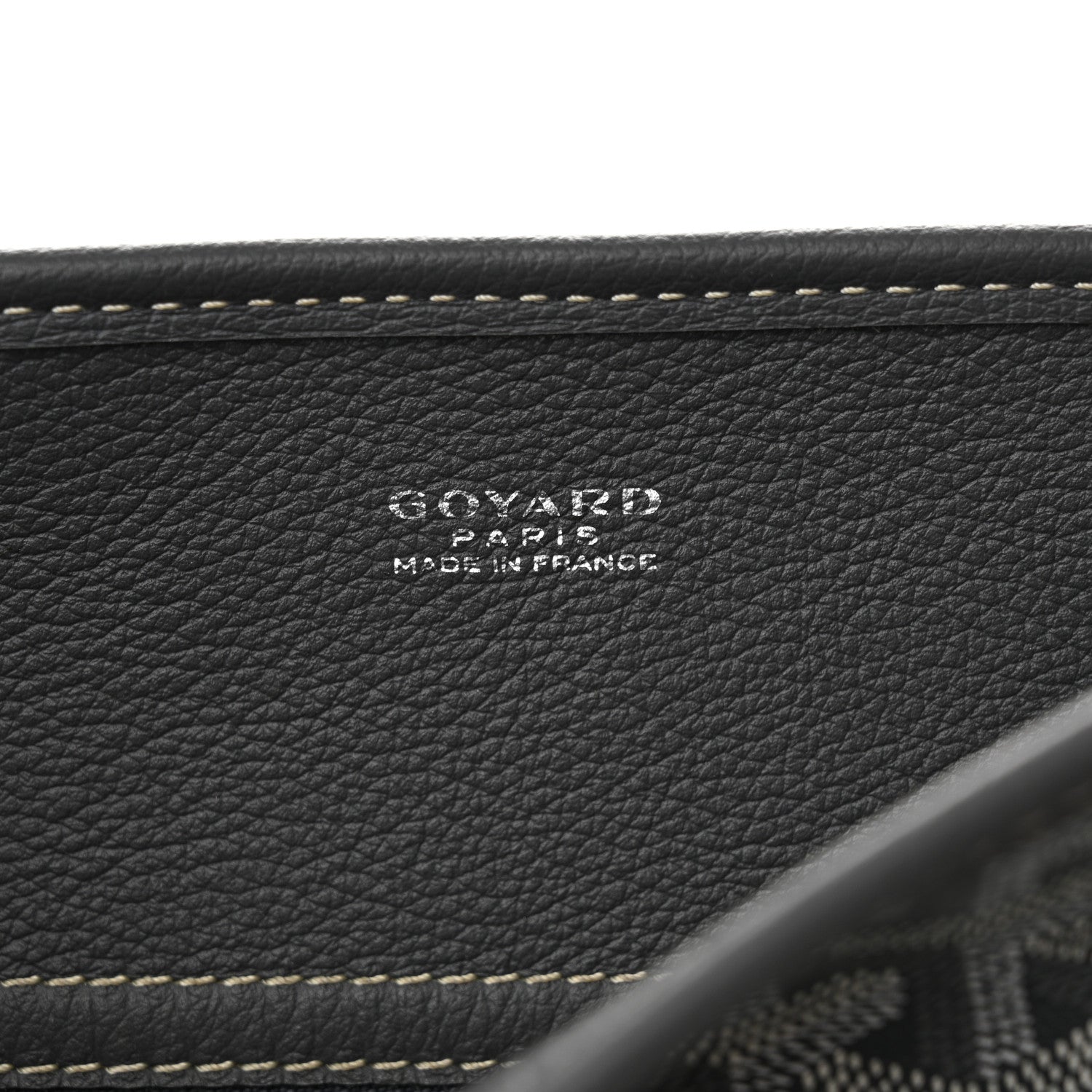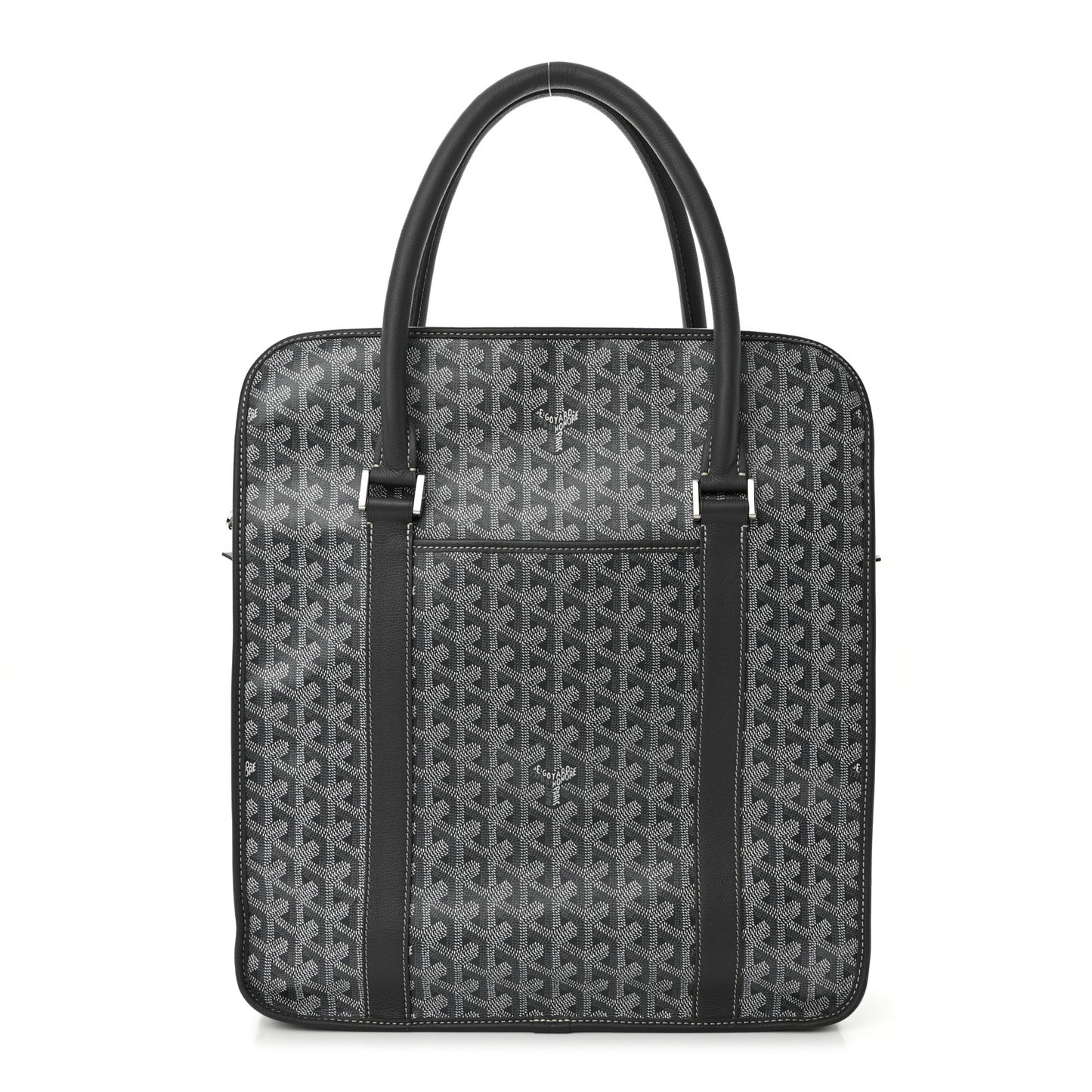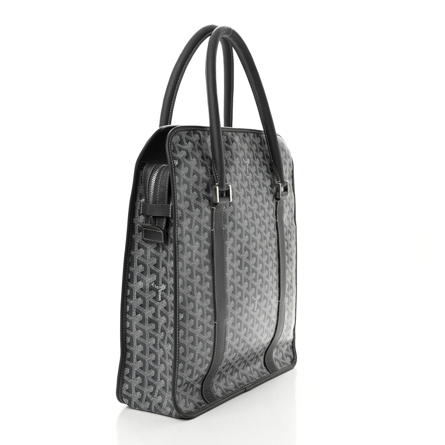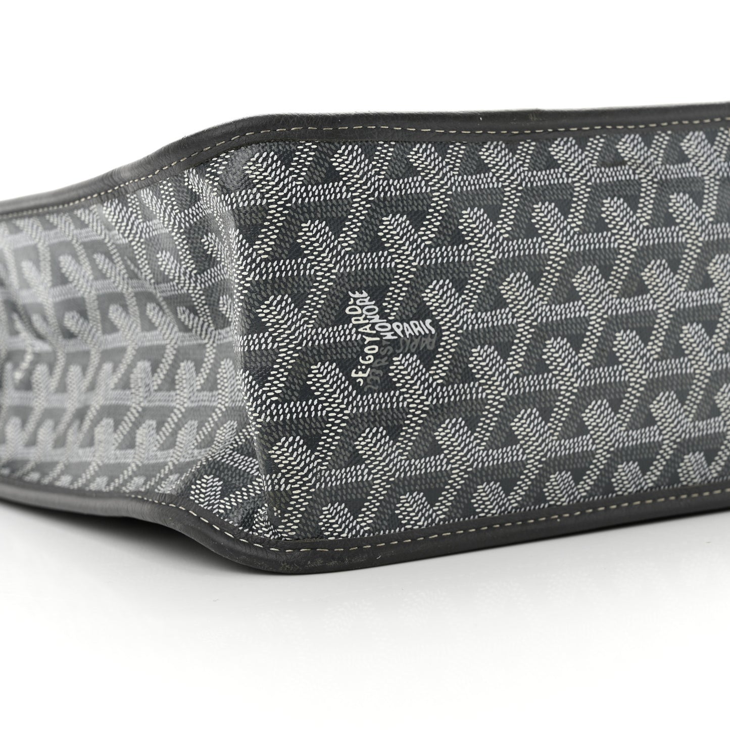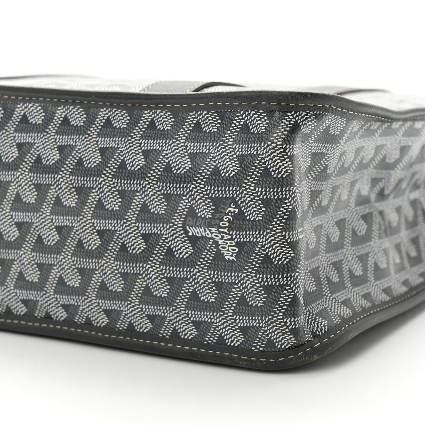 This is an authentic GOYARD Goyardine Bourgogne in Grey. This tote is crafted of classic Goyard chevron coated canvas in greys with grey leather trim. This tote features grey leather top handles, a front patch pocket, and silver hardware. The top zipper opens to a light beige fabric interior with patch pocket.Follow this item for alerts. Goyard is a registered trademark of Goyard. FASHIONPHILE is not affiliated with Goyard.