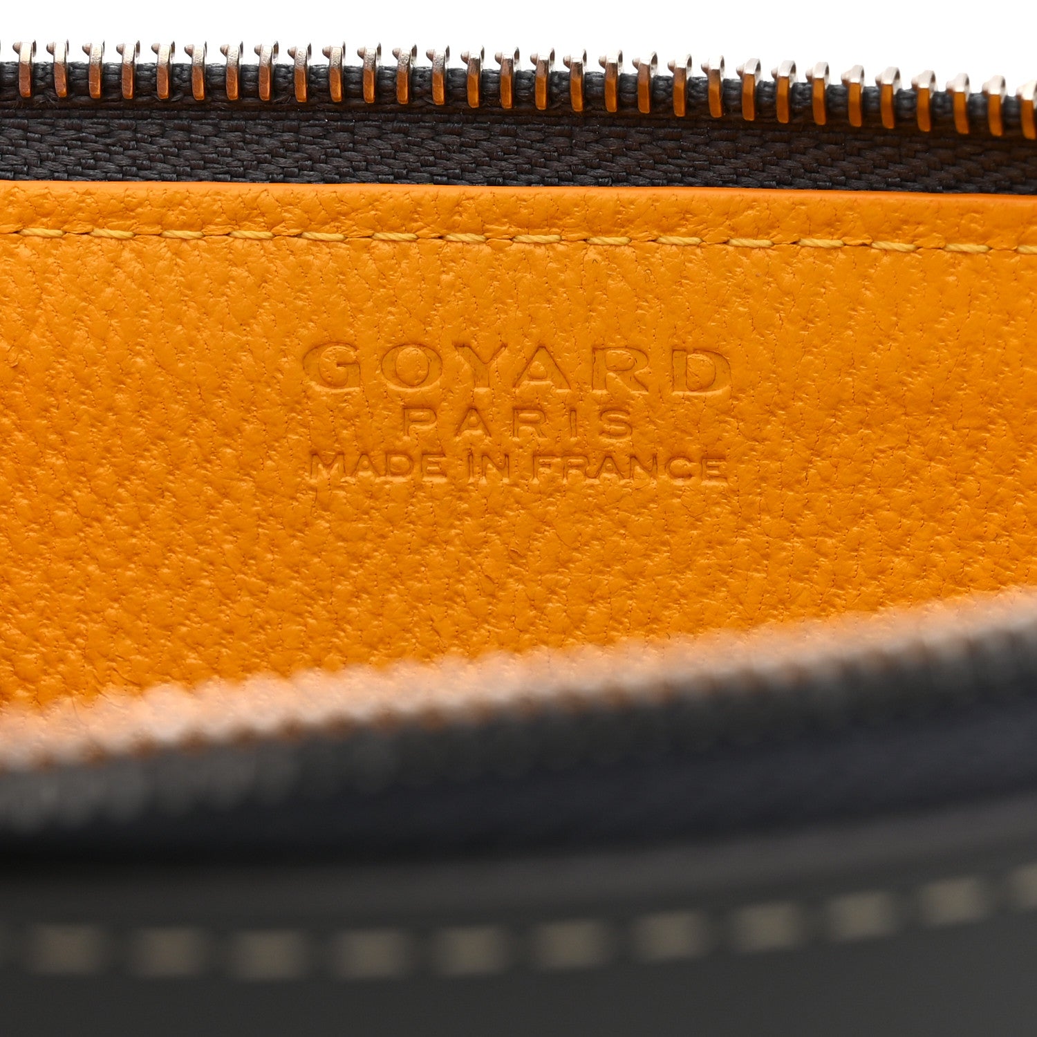 This is an authentic GOYARD Goyardine Insert Louise Wallet in Grey. This stylish card holder wallet is crafted of classic Goyard monogram coated canvas in grey with a top crest of smooth grey leather. It features card slots on the exterior and a top zipper that opens to a mango yellow leather interior.Follow this item for alerts. Goyard is a registered trademark of Goyard. FASHIONPHILE is not affiliated with Goyard.
