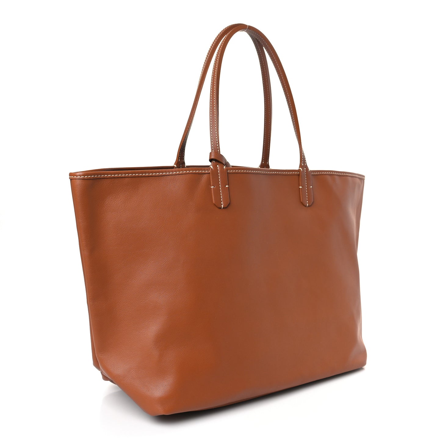 This is an authentic GOYARD Goyardine Reversible Anjou PM in Black and Gold. This is a relaxed tote that features the traditional Goyard chevron on black canvas. The bag has a brown leather trim along the top, matching strap handles, and a brown reversible lining. The bag comes with a stylish removable pouch with the same features as the tote.Follow this item for alerts. Goyard is a registered trademark of Goyard. FASHIONPHILE is not affiliated with Goyard.