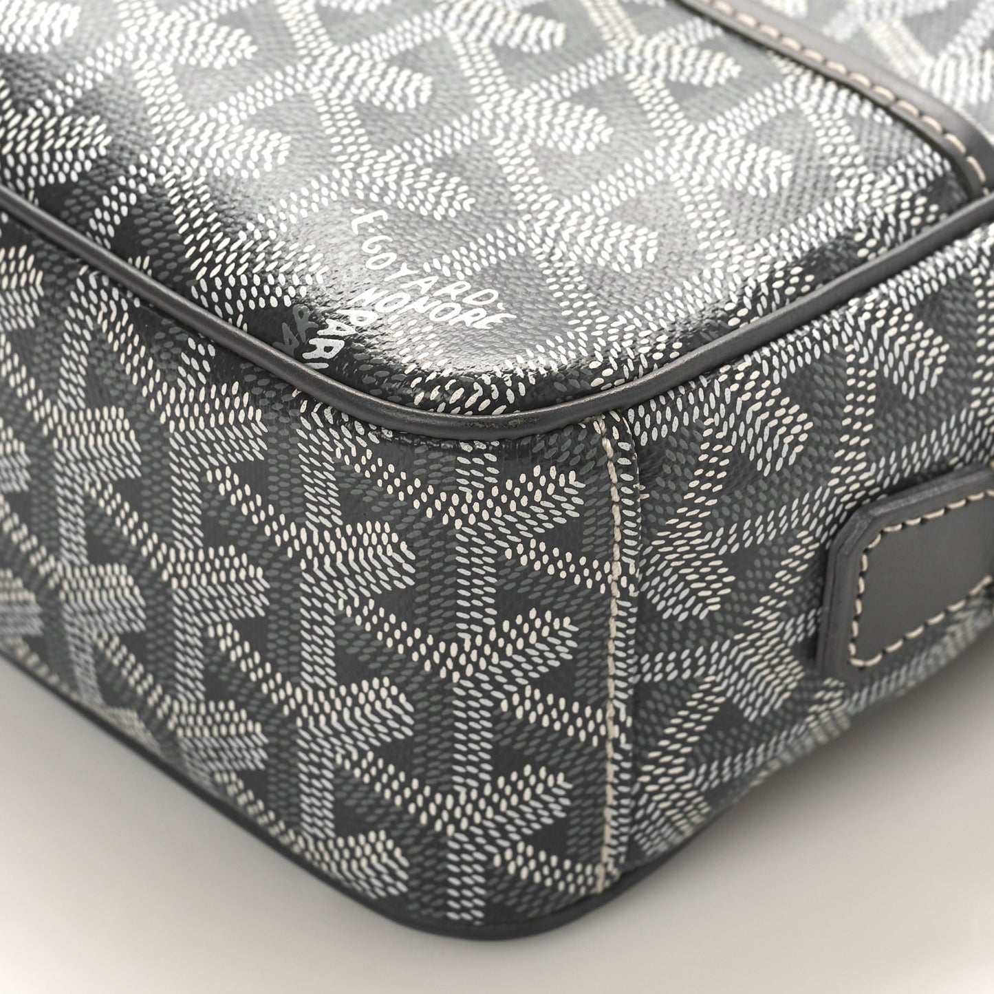 This is an authentic GOYARD Goyardine Sac Cap Vert in Grey. This stylish waist bag is crafted of classic Goyard chevron canvas in gray. The bag features an adjustable leather shoulder strap with silver hardware and a facing patch pocket with leather trim and leather trim along the top zipper opening. The silver zipper opens to a yellow fabric interior with a patch pocket.Follow this item for alerts. Goyard is a registered trademark of Goyard. FASHIONPHILE is not affiliated with Goyard.