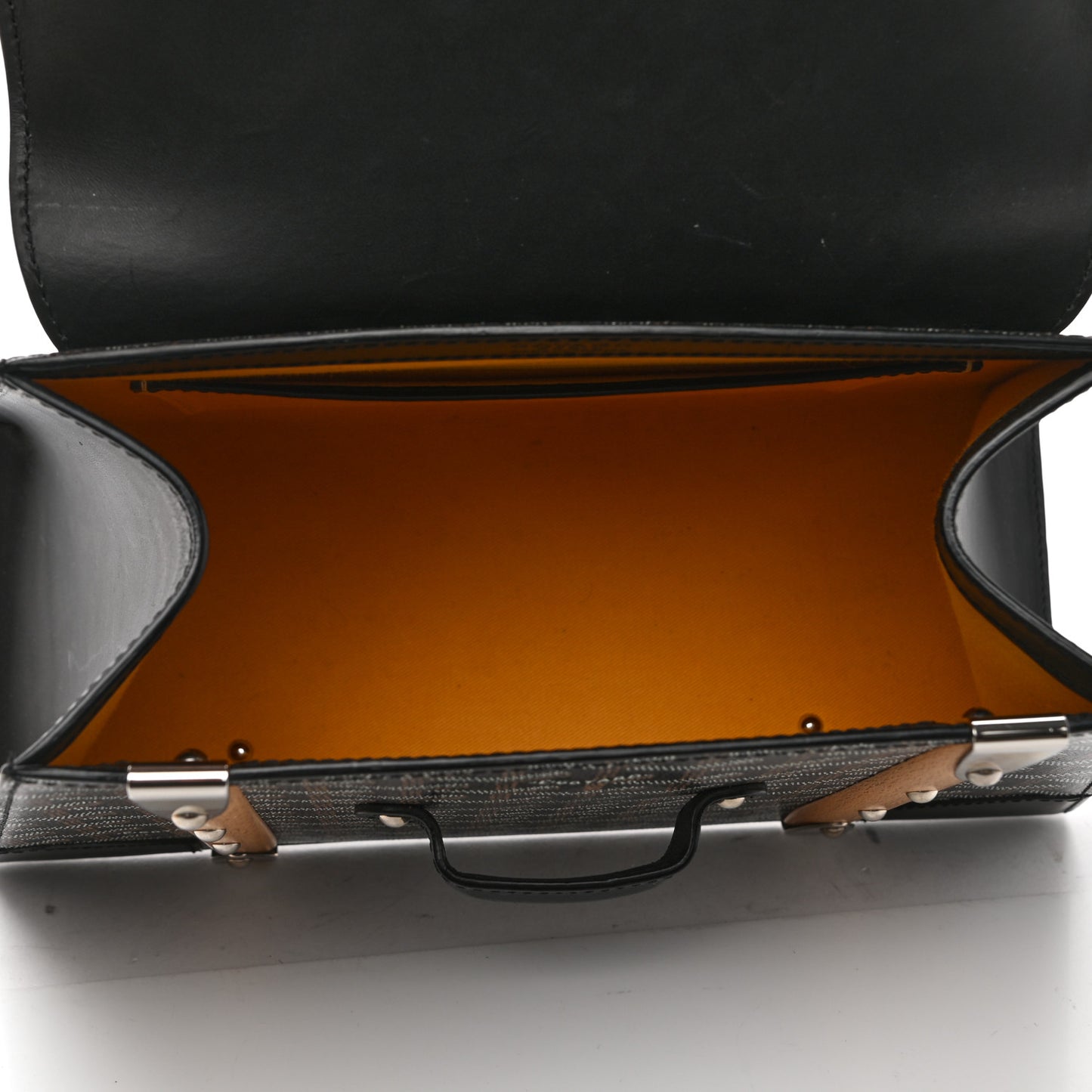 This is an authentic GOYARD Goyardine Saigon PM in Black. This stylish travel case is crafted of black canvas with classic white, tan and brown Goyard chevron, a wooden handle and wooden front panels, with polished silver hardware. The cross-over leather top flap opens to a yellow fabric interior with a patch pocket.Follow this item for alerts. Goyard is a registered trademark of Goyard. FASHIONPHILE is not affiliated with Goyard.